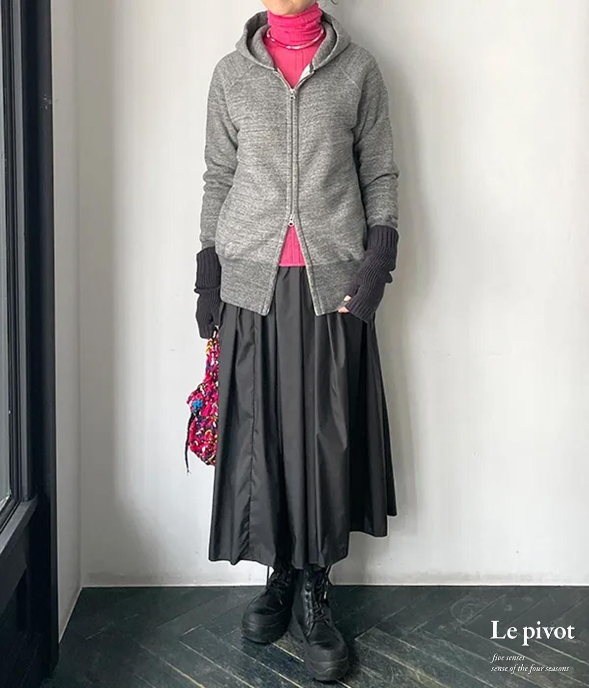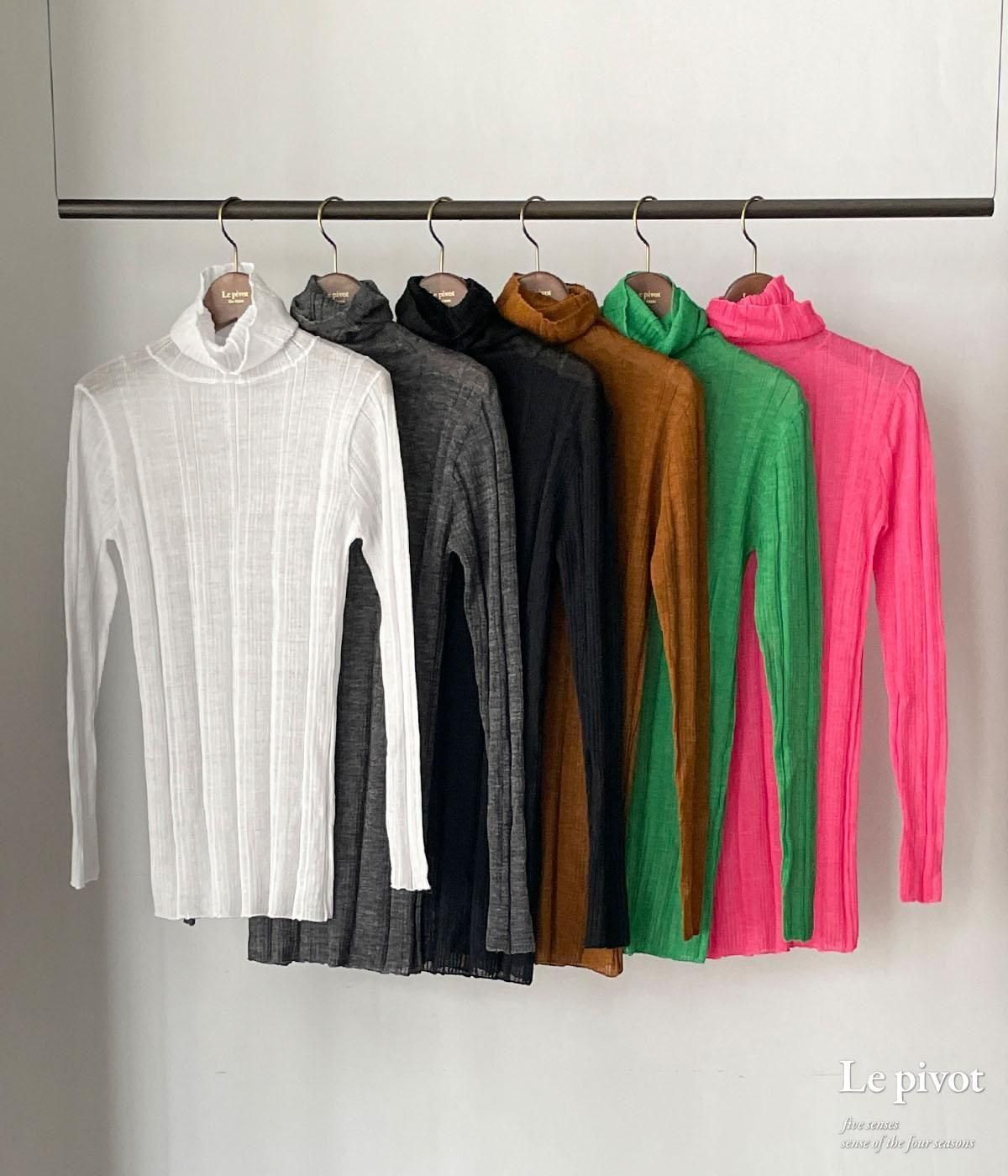 長めのタートル部分はお好きな位置で折り返したり、そのままくしゅくしゅとたるませたり。 細身ですがかなりのテンションがあり、フィット感が心地良いアイテムになります。