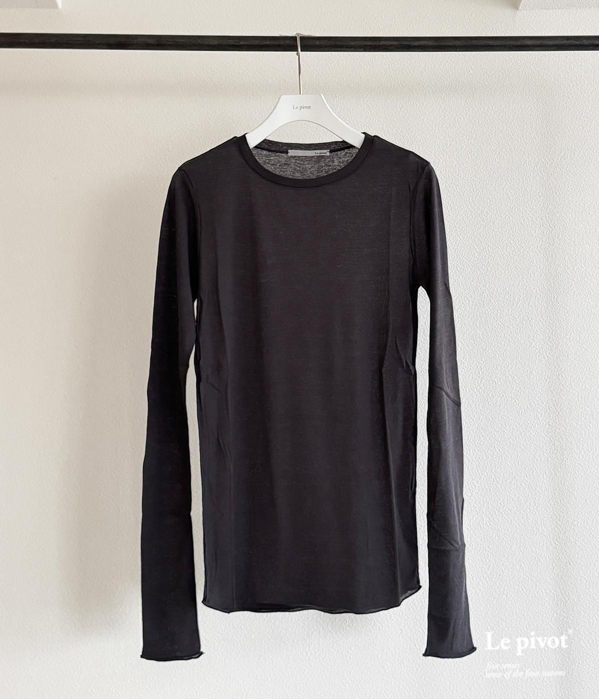 柔らかく極上の肌触りのガーゼフライスを使用した、薄手のタートルネックの長袖インナーです。毛羽を落とした極細の糸を使用していますが、強めの強撚糸なので、薄さほど頼りなくは感じません。
