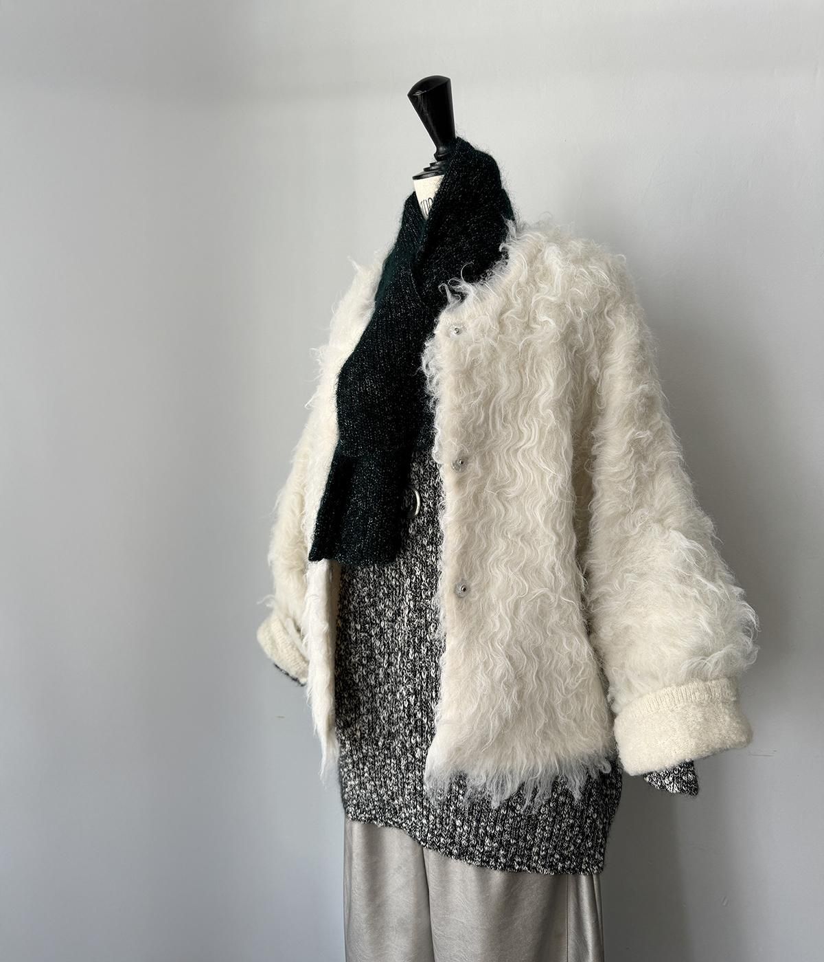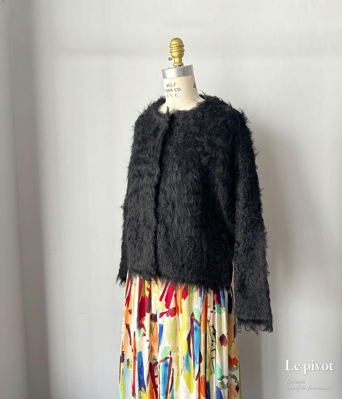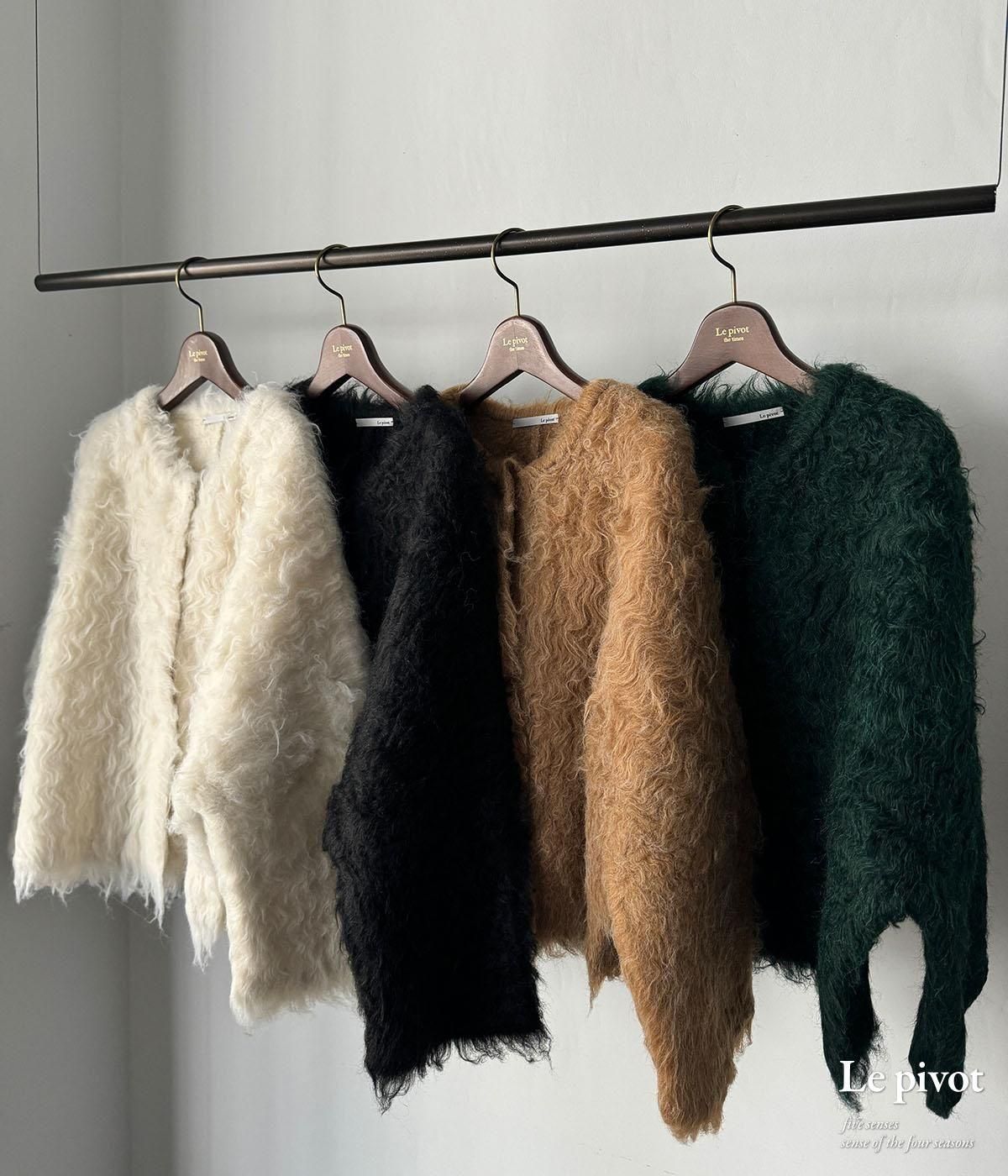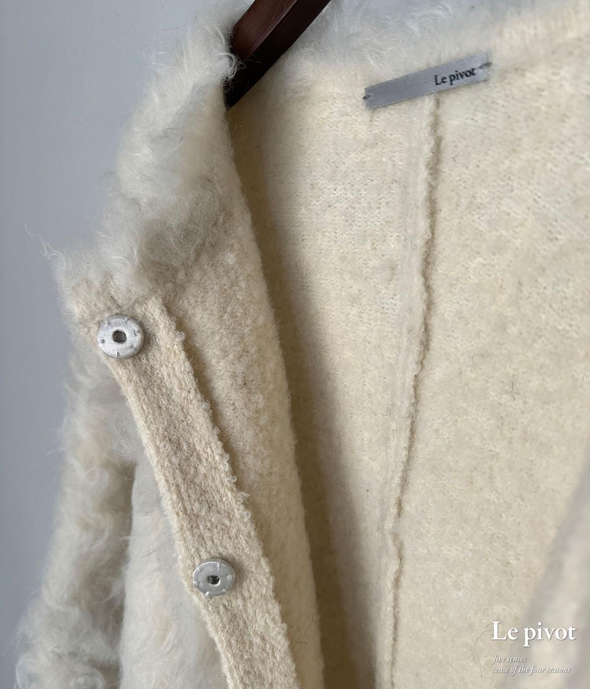 カーディガンとしてもブルゾンとしても着られるふわふわのニット。