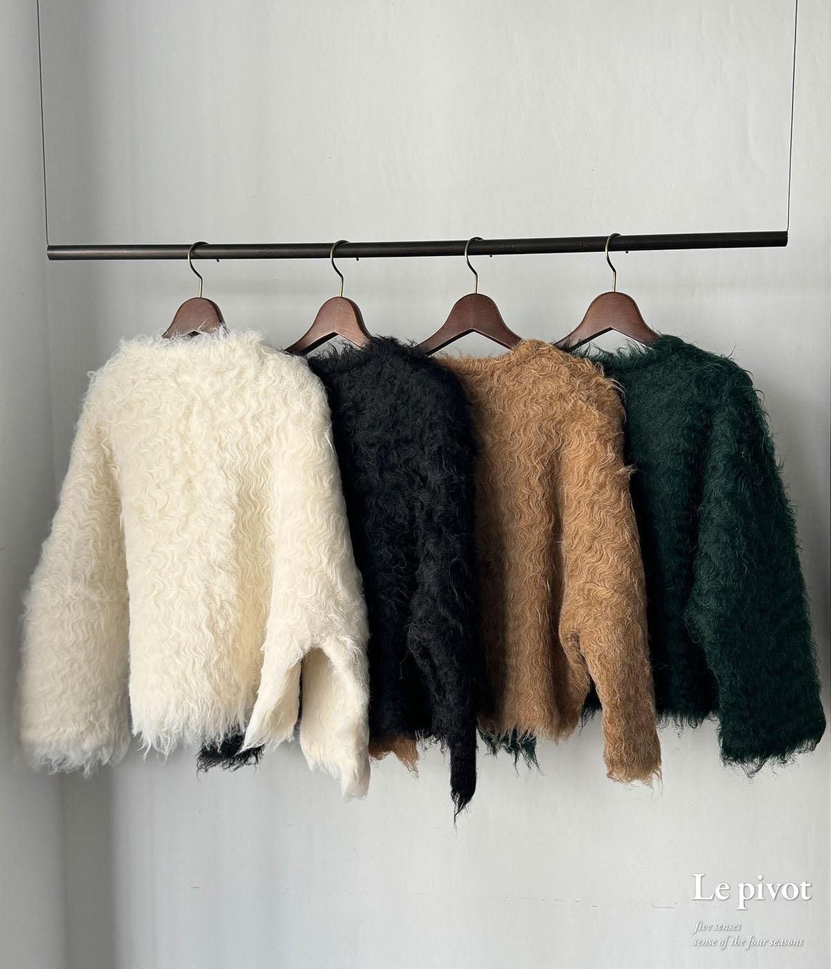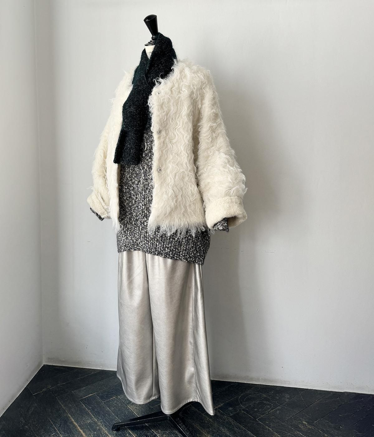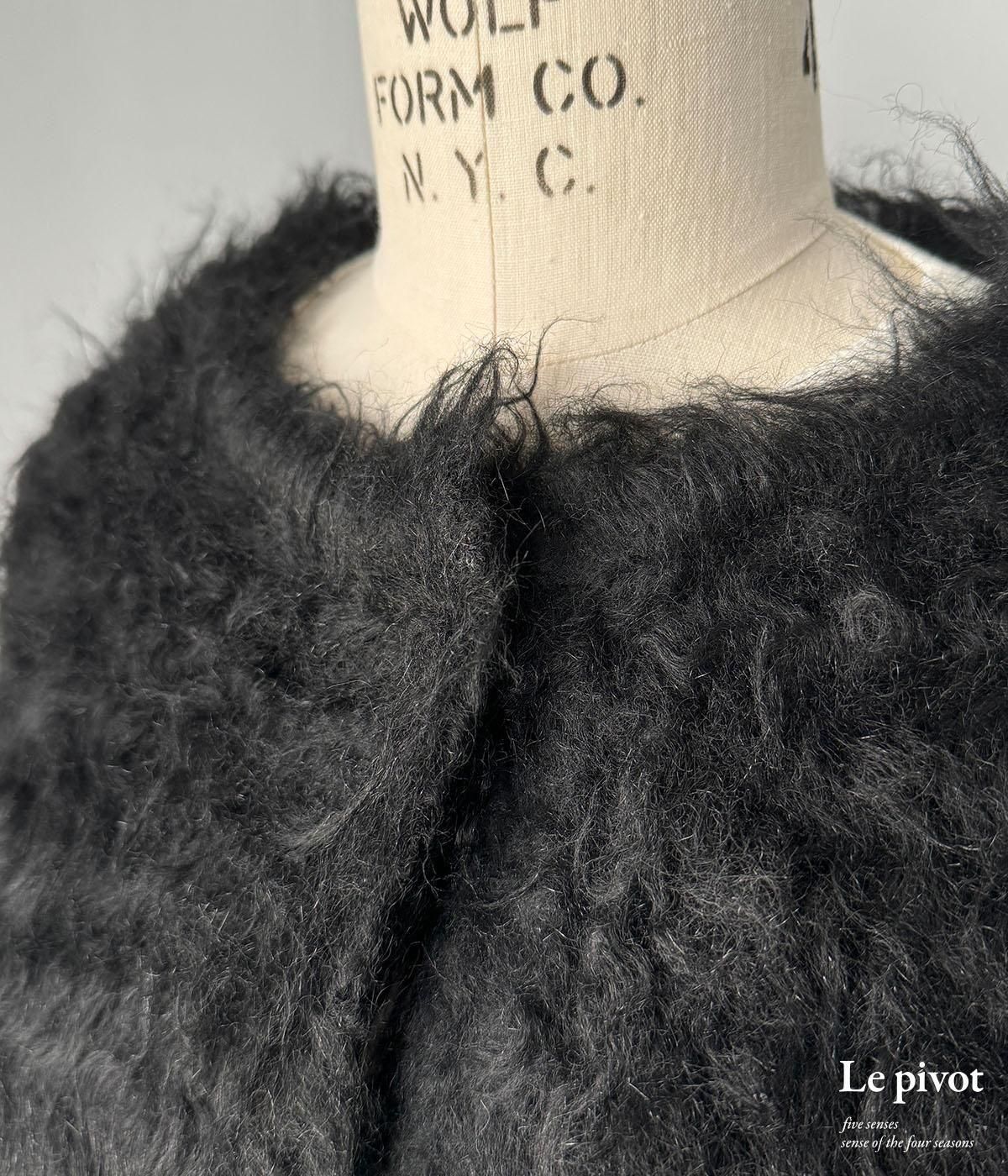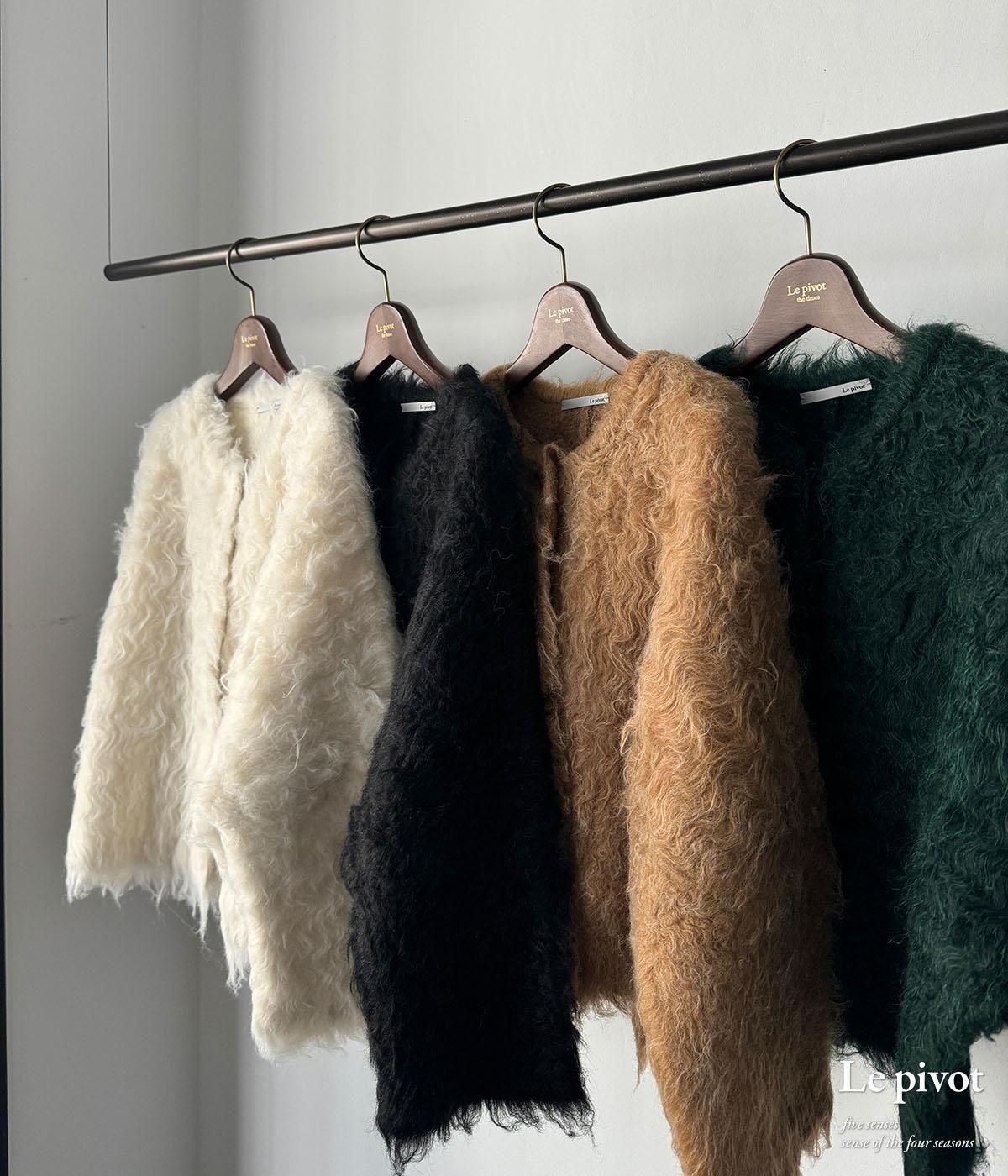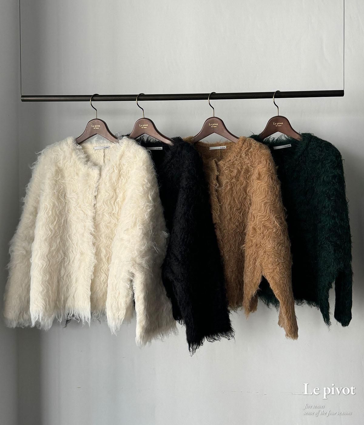 カーディガンとしてもブルゾンとしても着られるふわふわのニット。