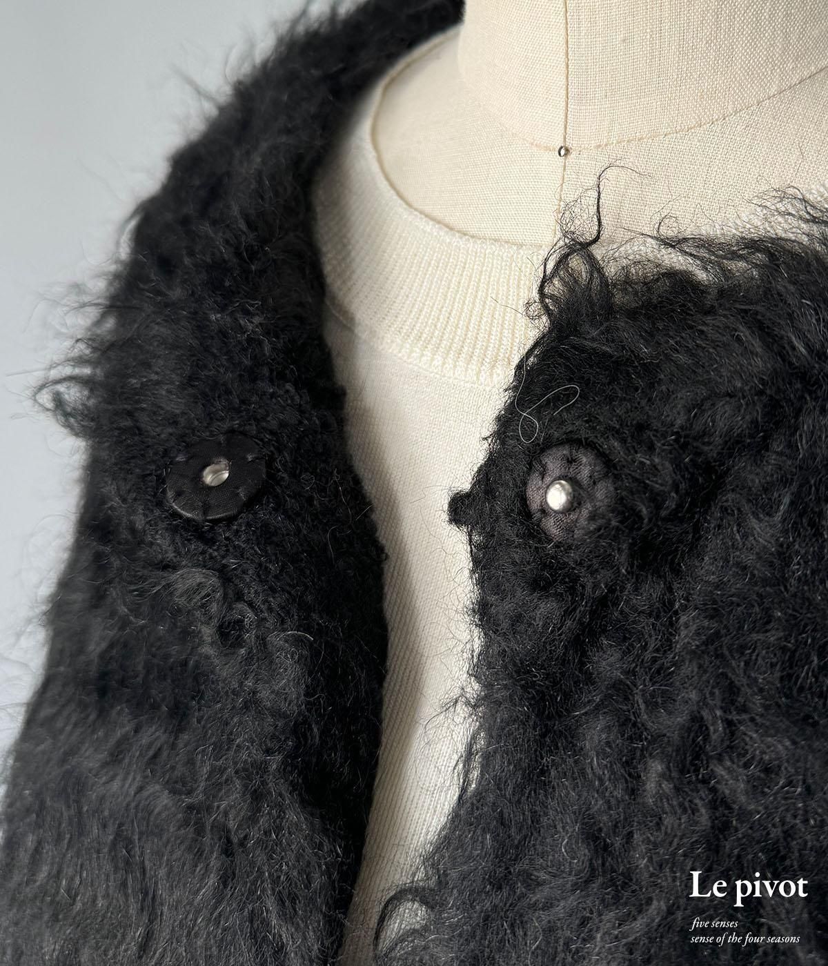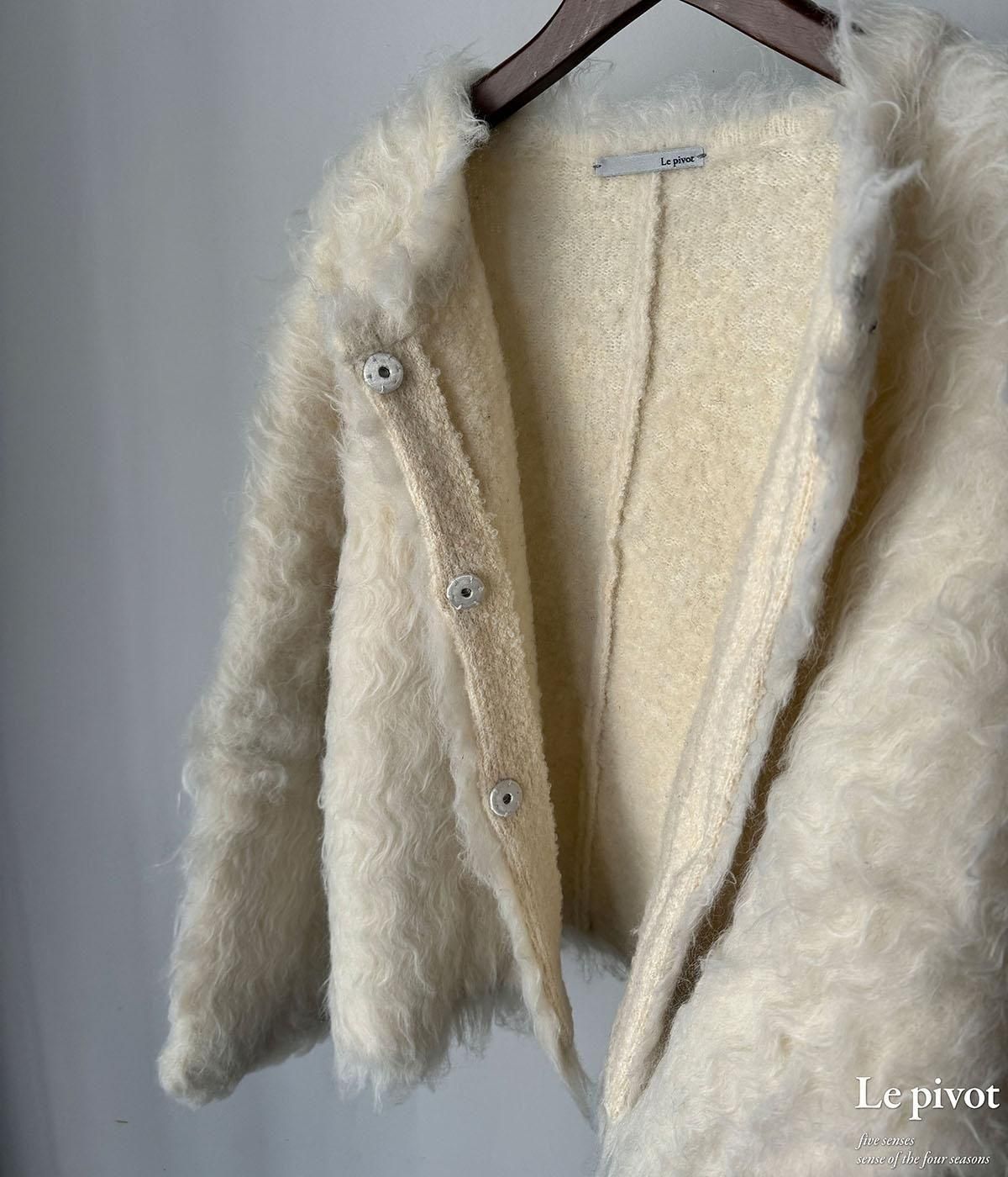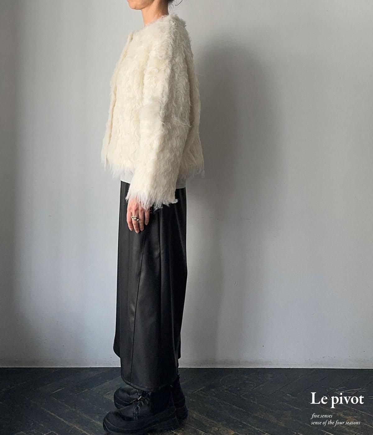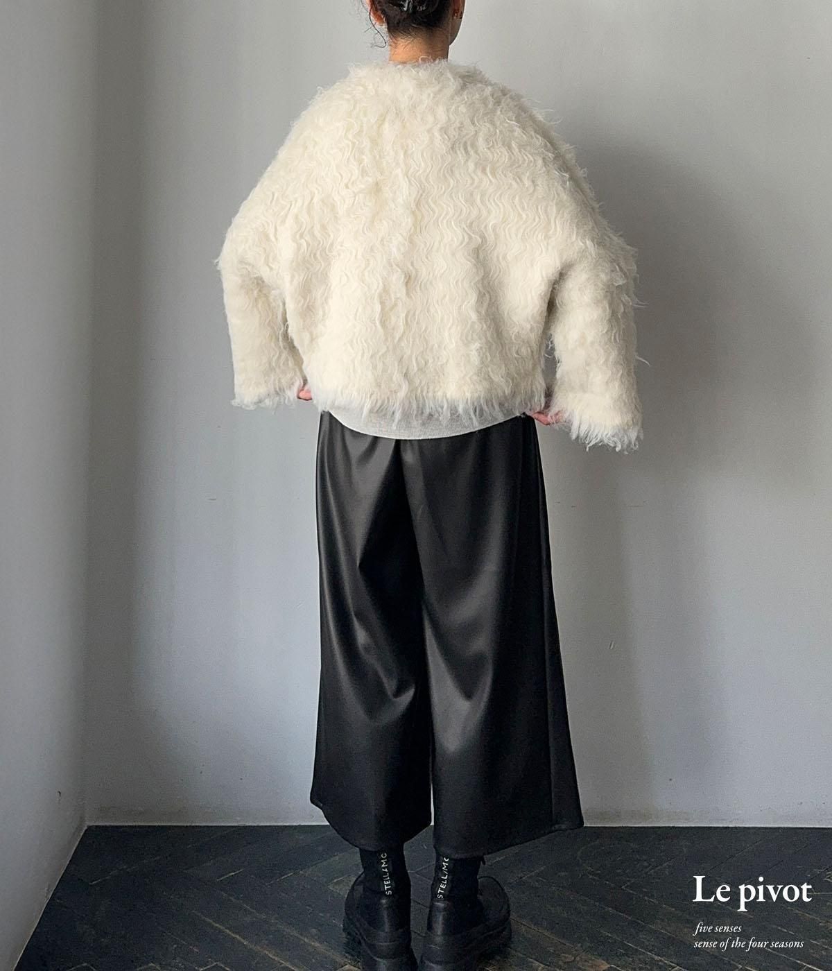 カーディガンとしてもブルゾンとしても着られるふわふわのニット。