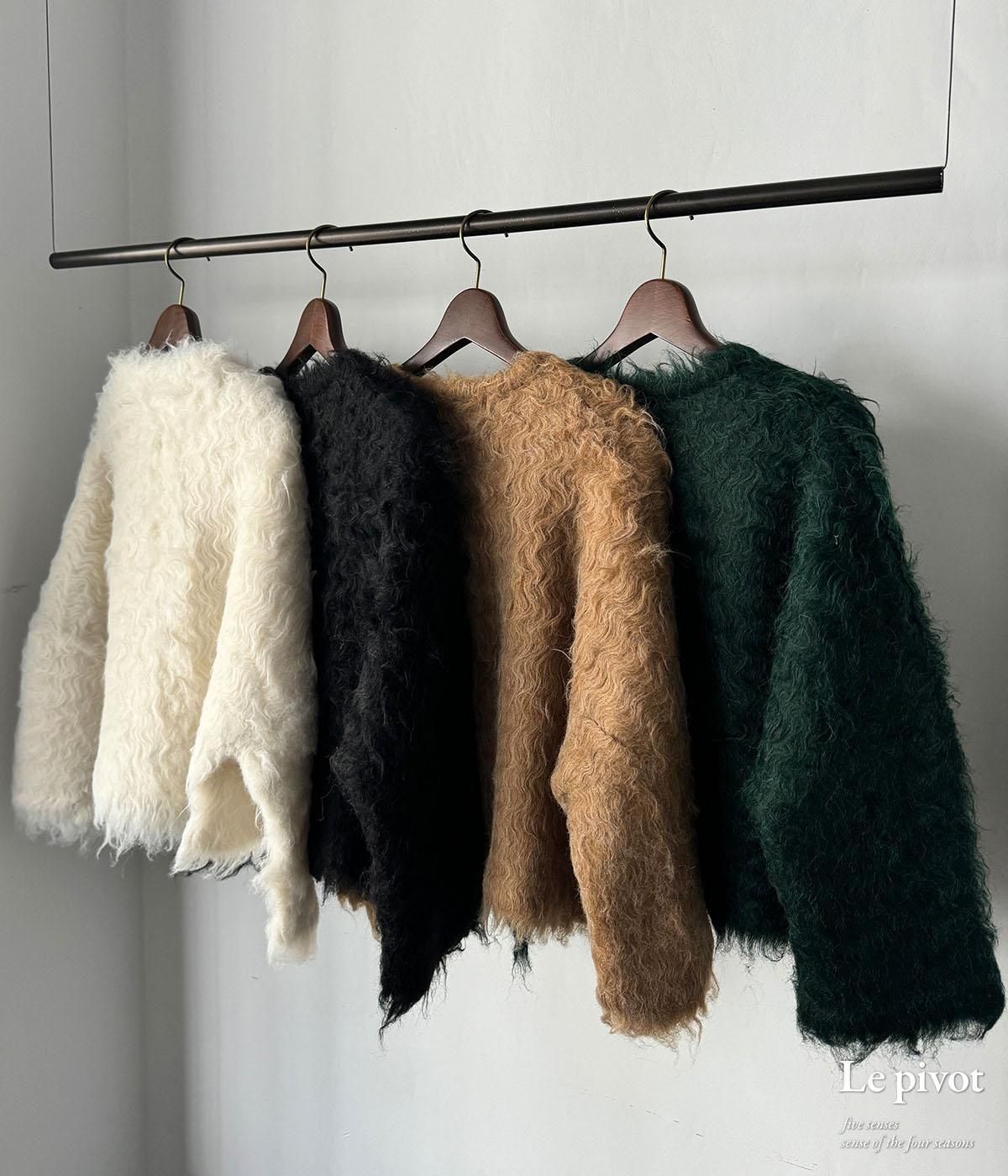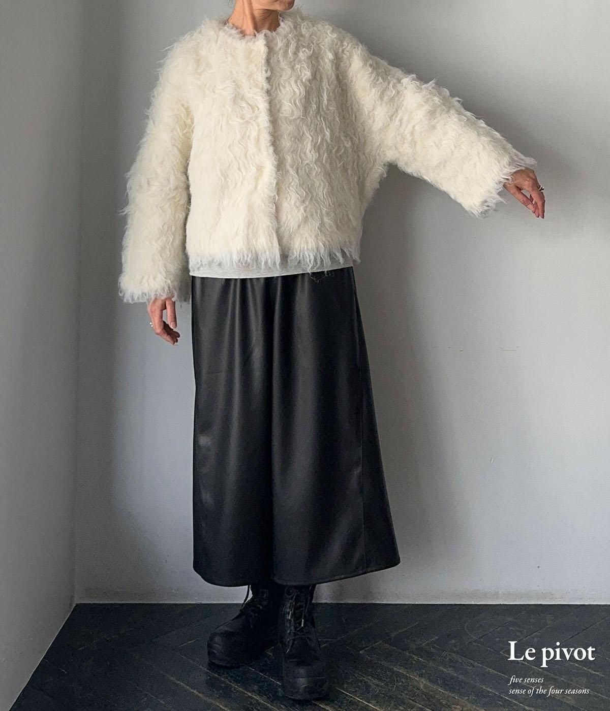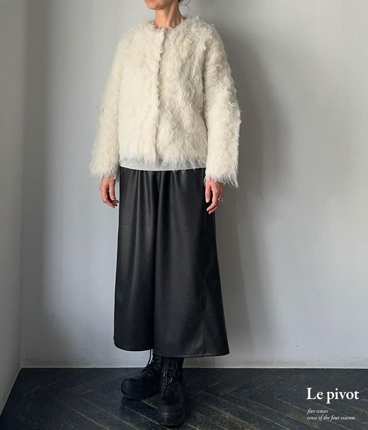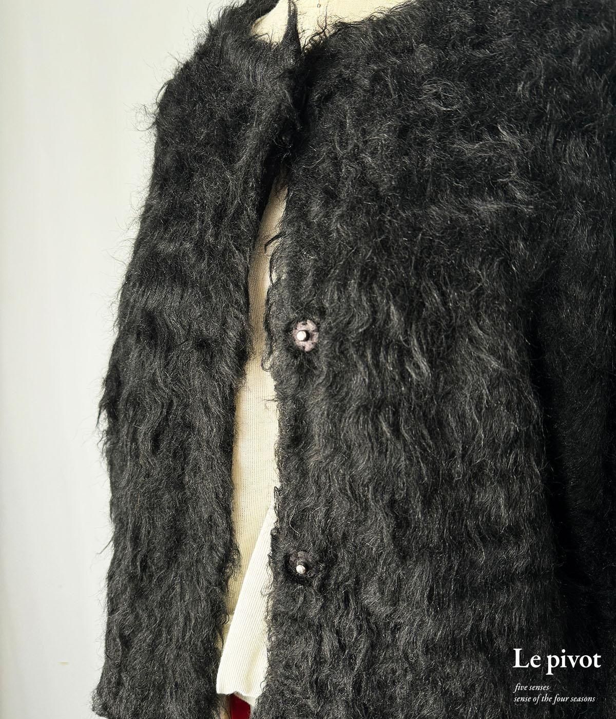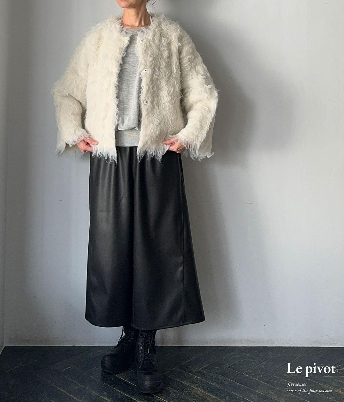 カーディガンとしてもブルゾンとしても着られるふわふわのニット。