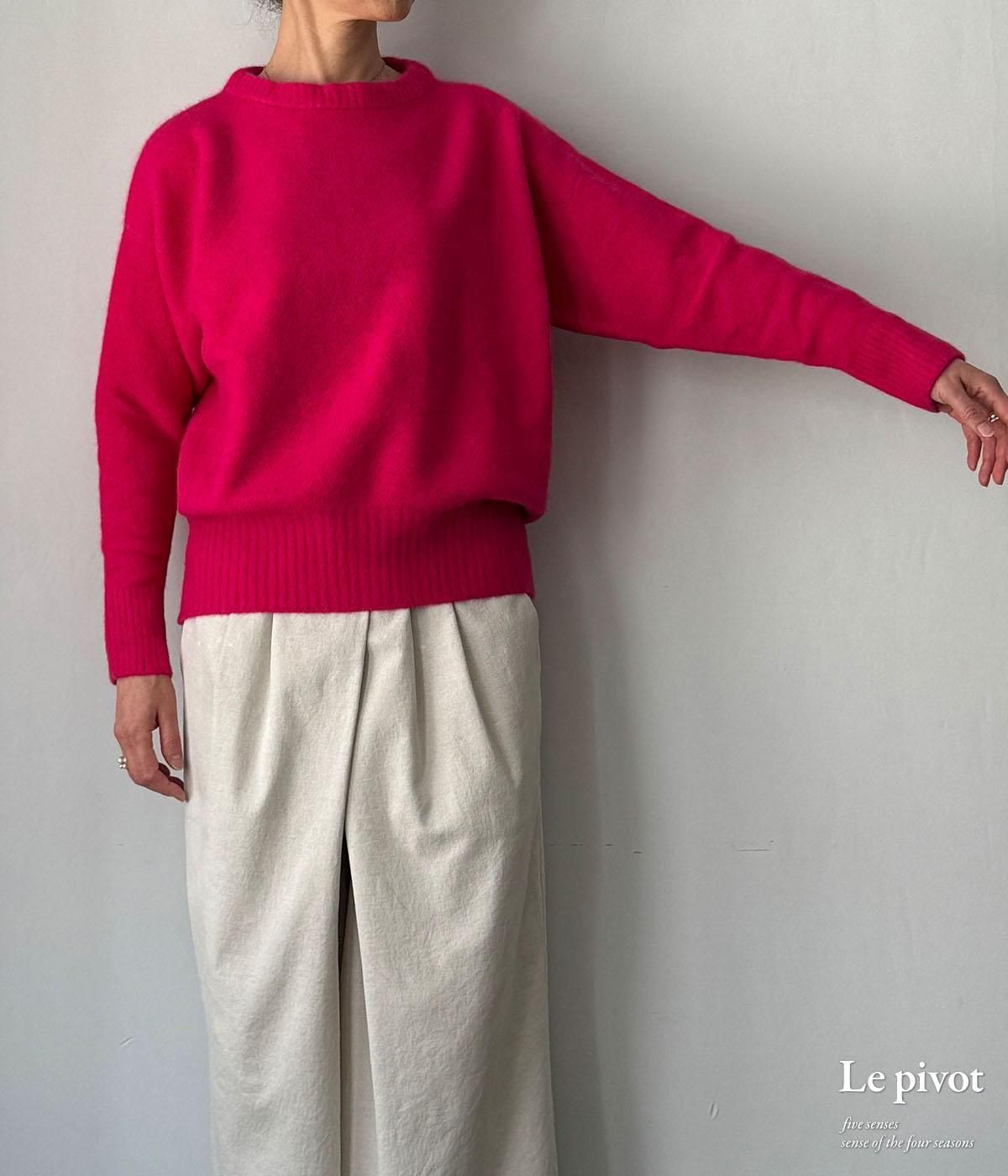 シンプルなクルーネックニットですが、上質な糸でつくったベーシックアイテムこそ出番も多く、い毎日のように手に取ってしまうアイテムです。
