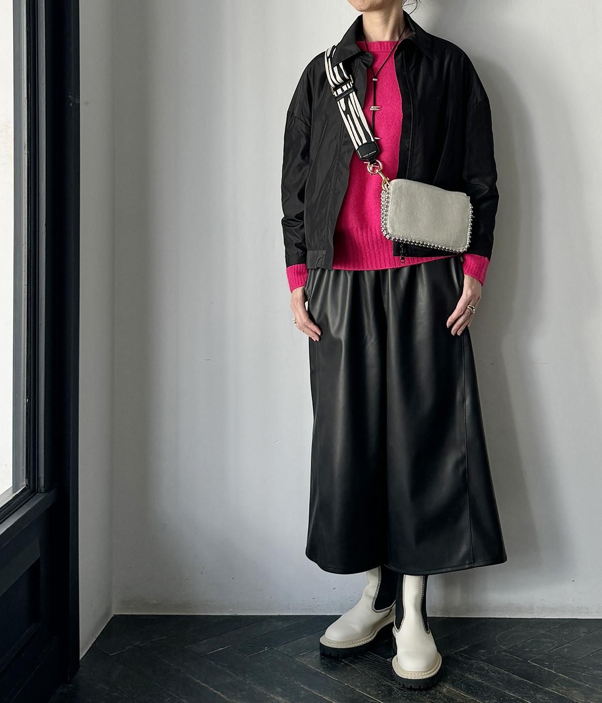 合わせているパンツ:#2431-1 オックスタックパンツ 14/アイボリー、#4483 レザーワイドパンツ 19/ブラック