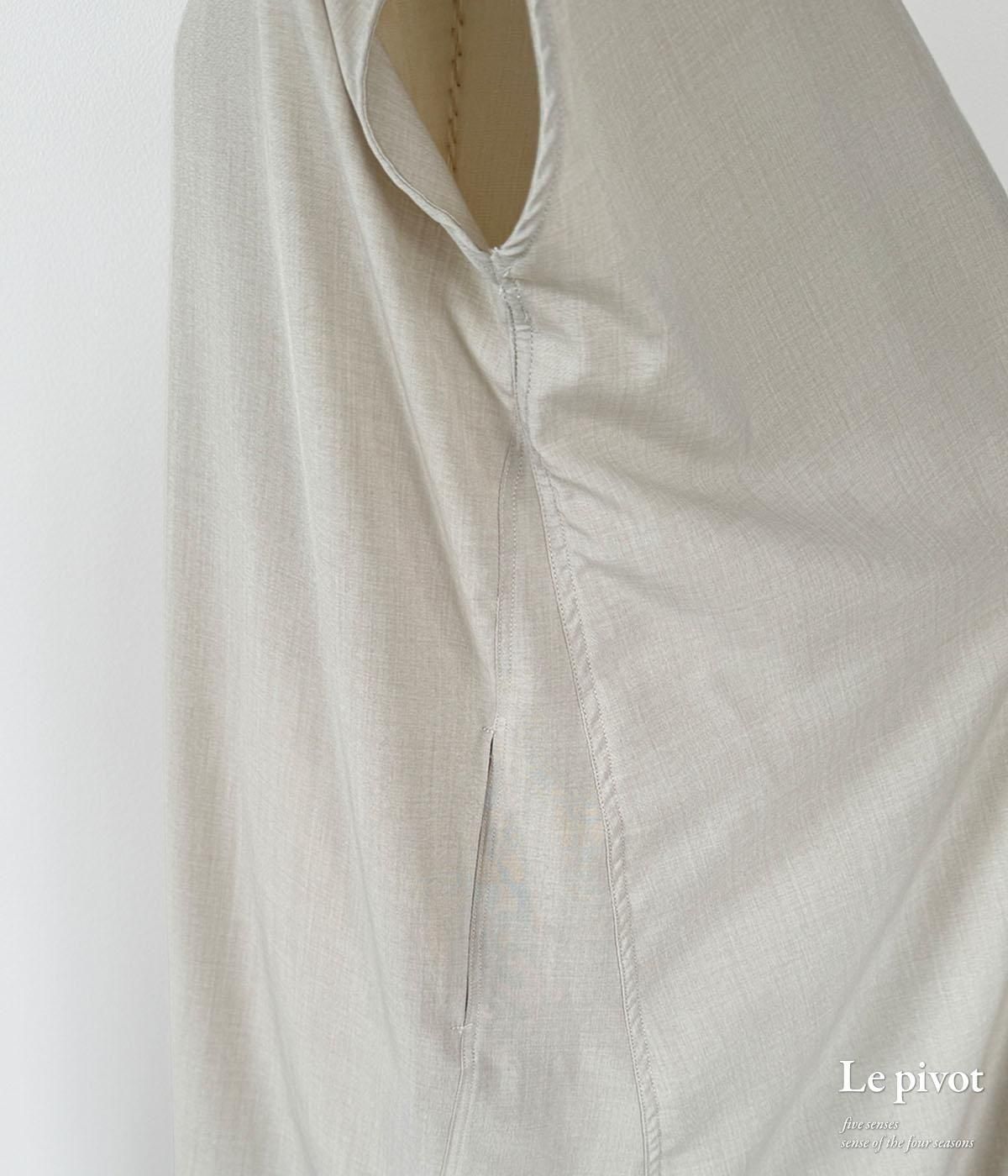 再生繊維を使用したポリエステル素材。ポリエステルですが、麻のような風合いや見え方で、麻と違ってシワになりにくい生地で、水洗いも可能なイージーケア。