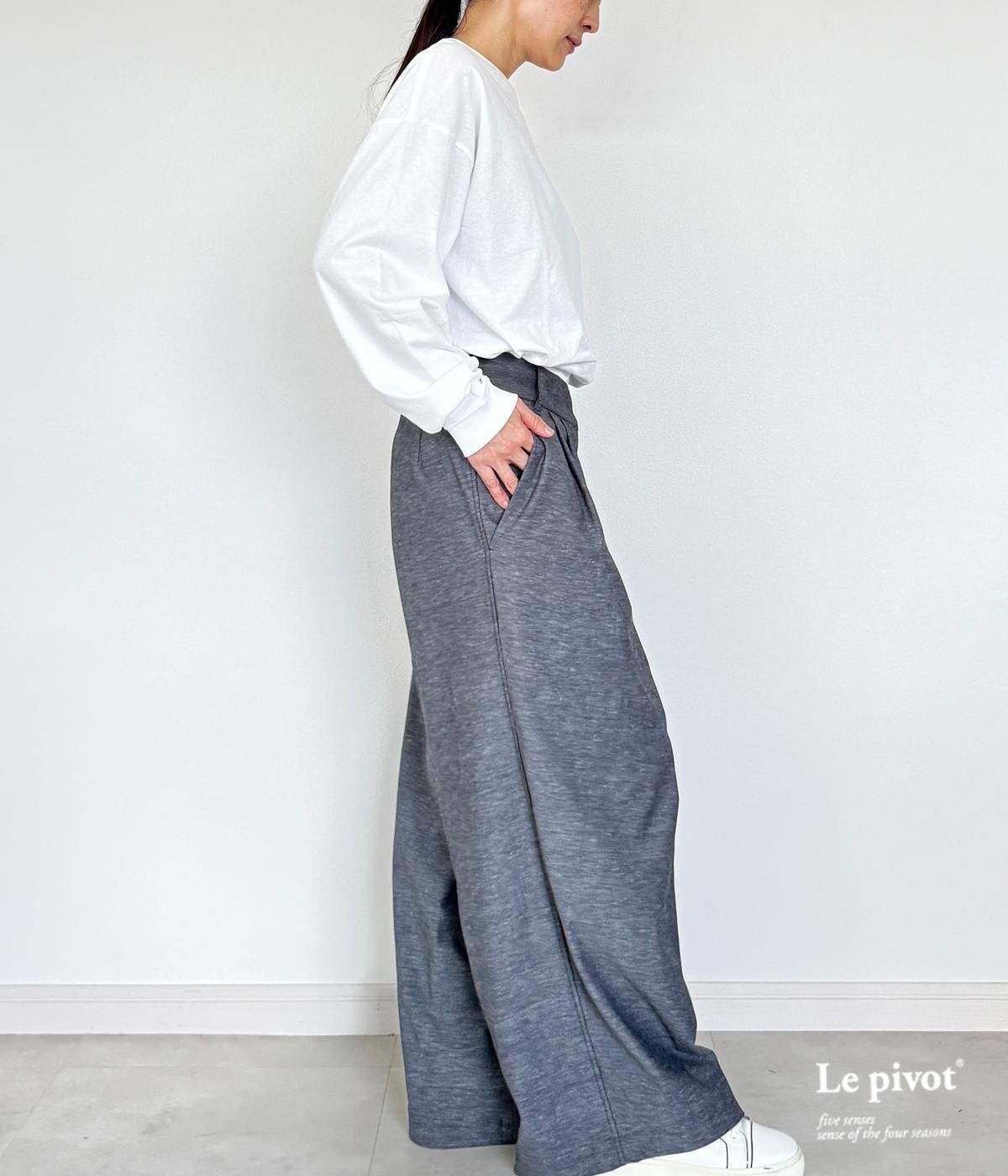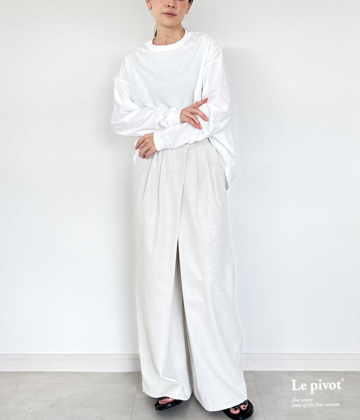 モデル身長:164cm ボトムス:#2431-1 オックスタックパンツ 14/アイボリー