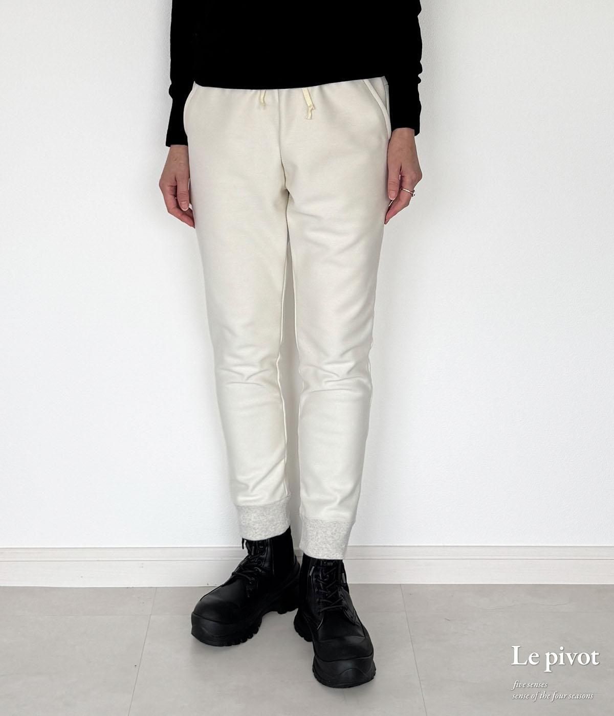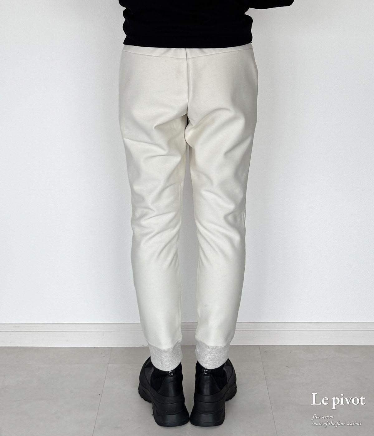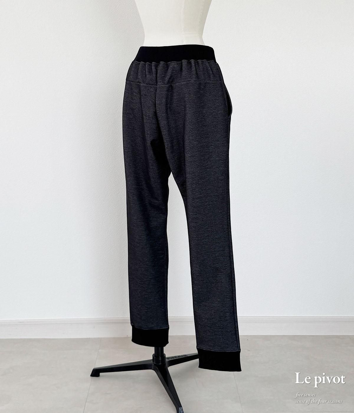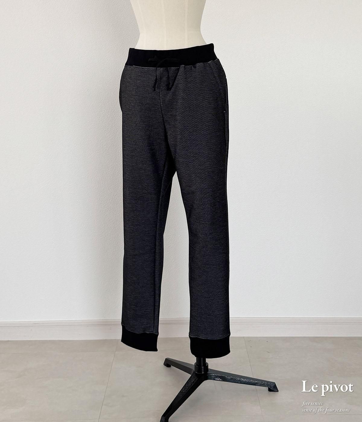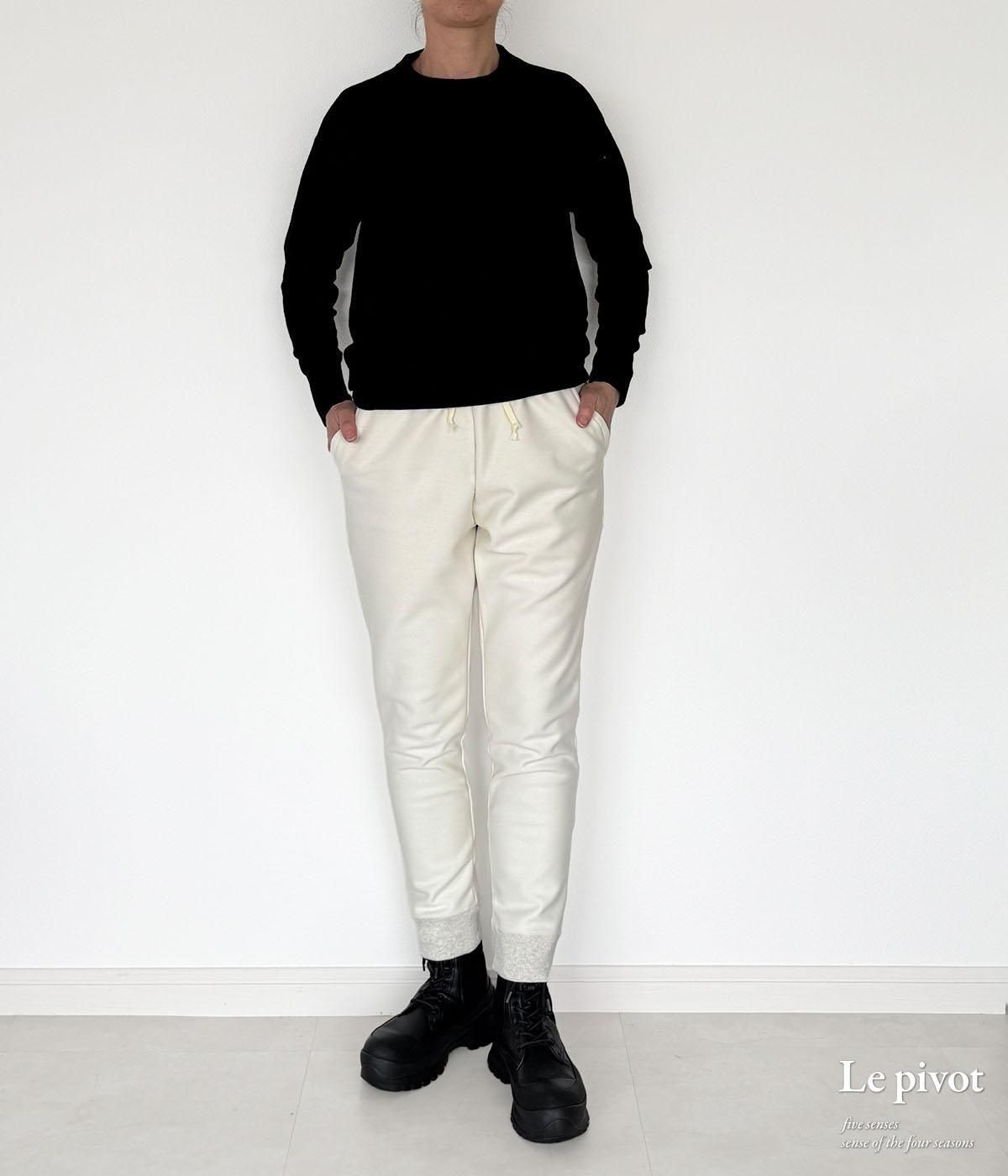 [ 素 材 ] 表:綿 51% , ポリエステル 42% , ポリウレタン 7%/裏:ポリエステル96% , ポリウレタン4%/袋布:綿 100%/ ウエスト・裾リブ:綿 95% , ポリウレタン 5%