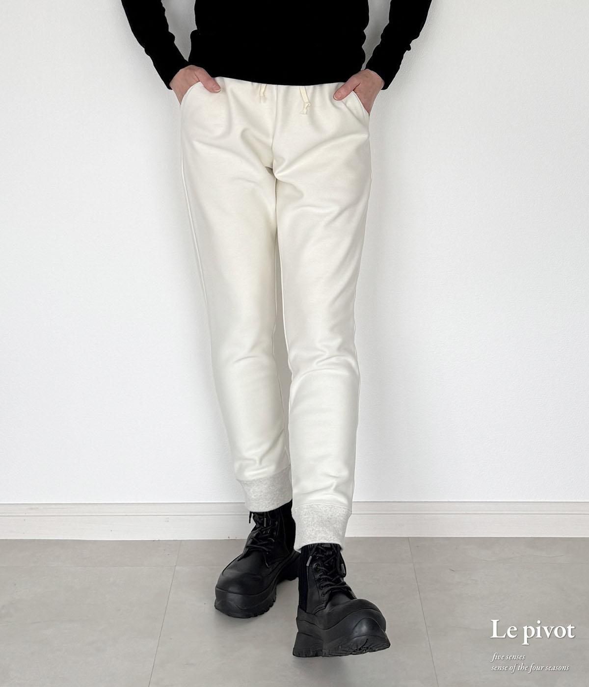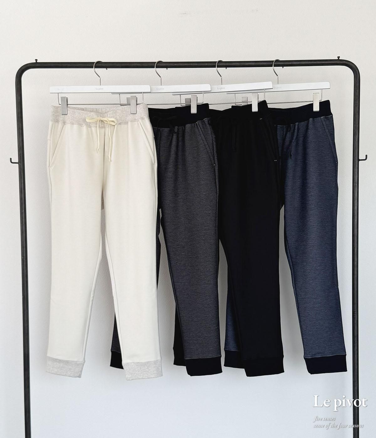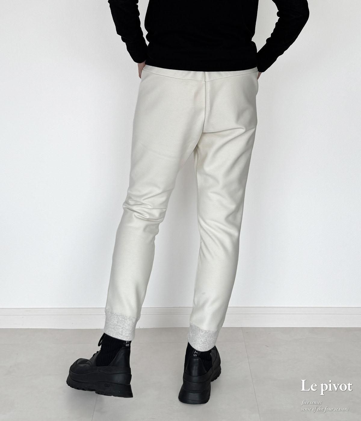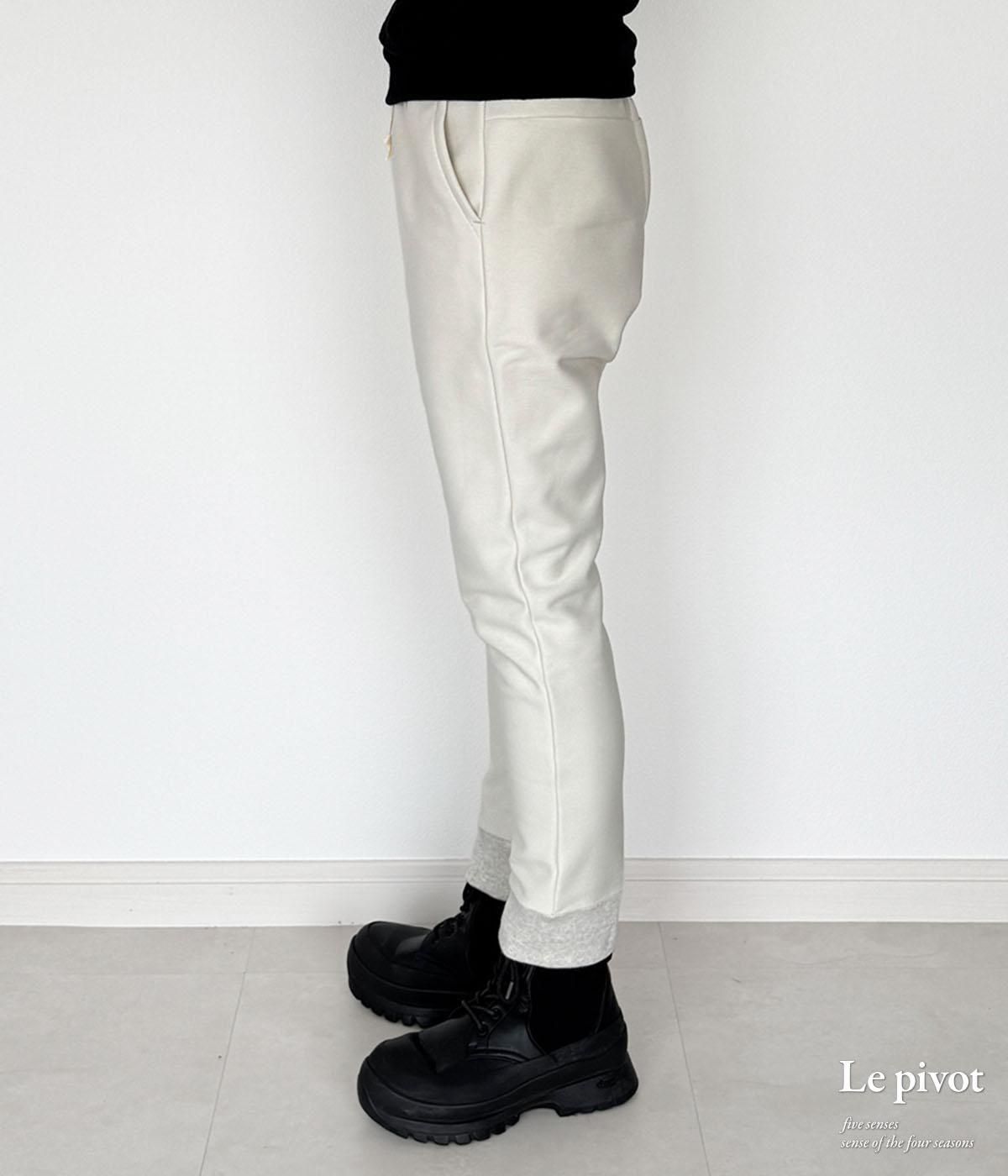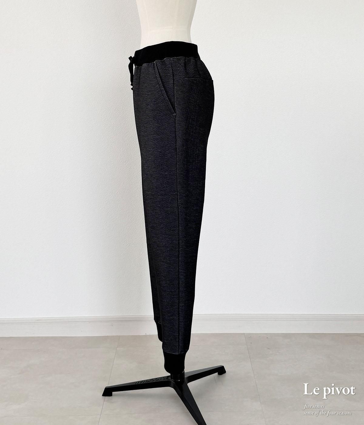 [ 素 材 ] 表:綿 51% , ポリエステル 42% , ポリウレタン 7%/裏:ポリエステル96% , ポリウレタン4%/袋布:綿 100%/ ウエスト・裾リブ:綿 95% , ポリウレタン 5%