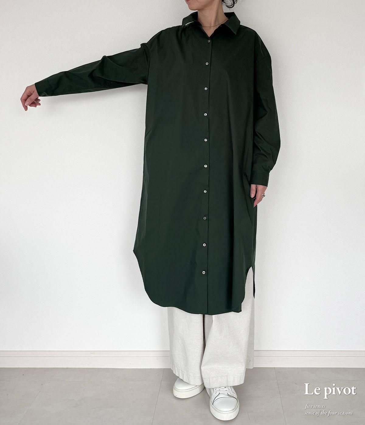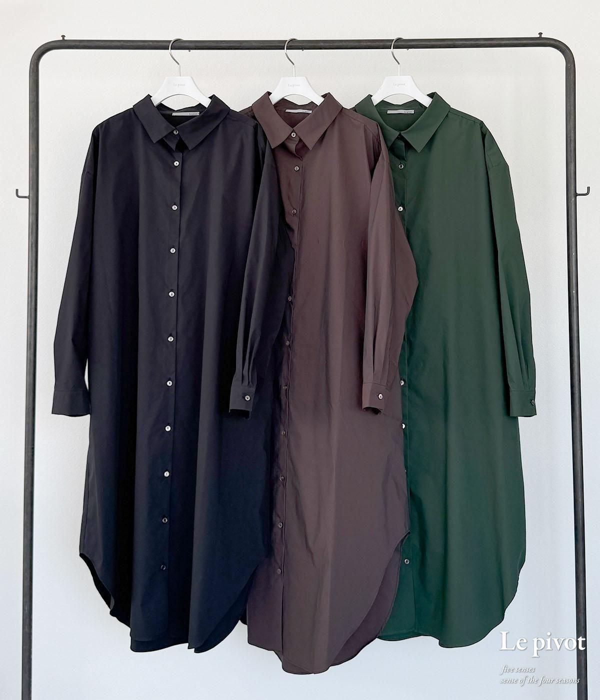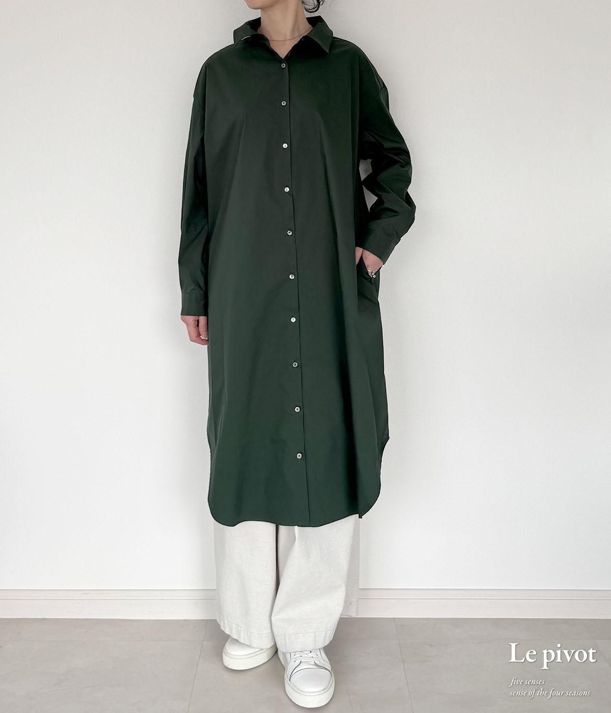 丈の長いシャツワンピースはシンプルなものほど、1枚あると着回しが効いてとても便利です。