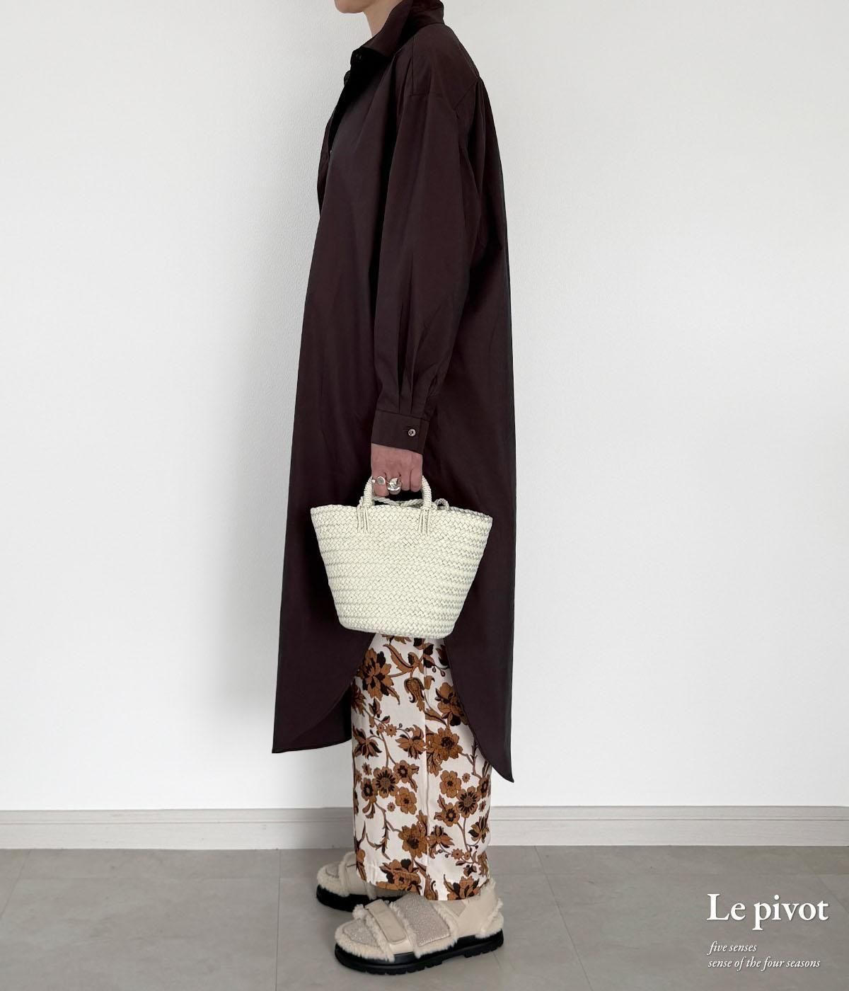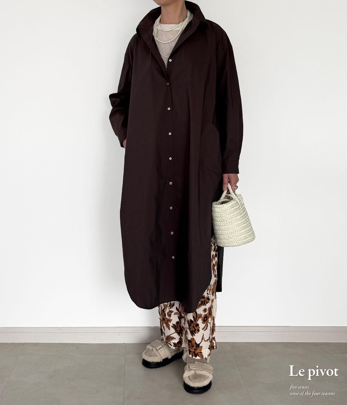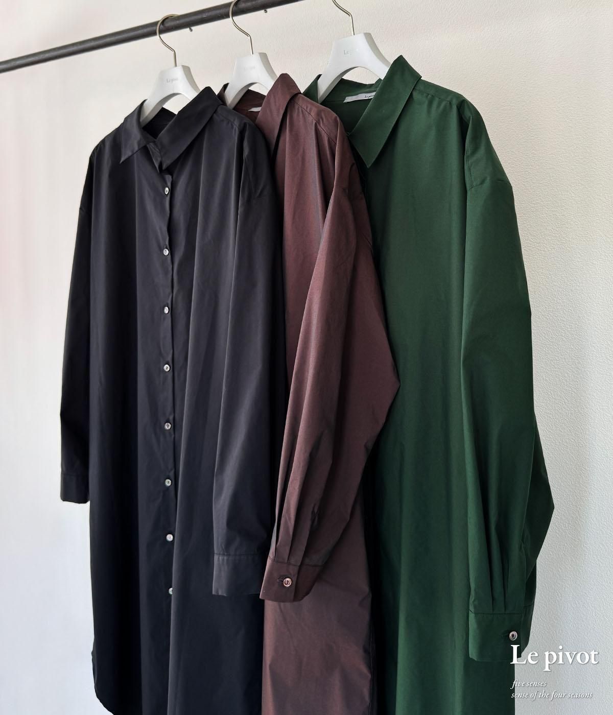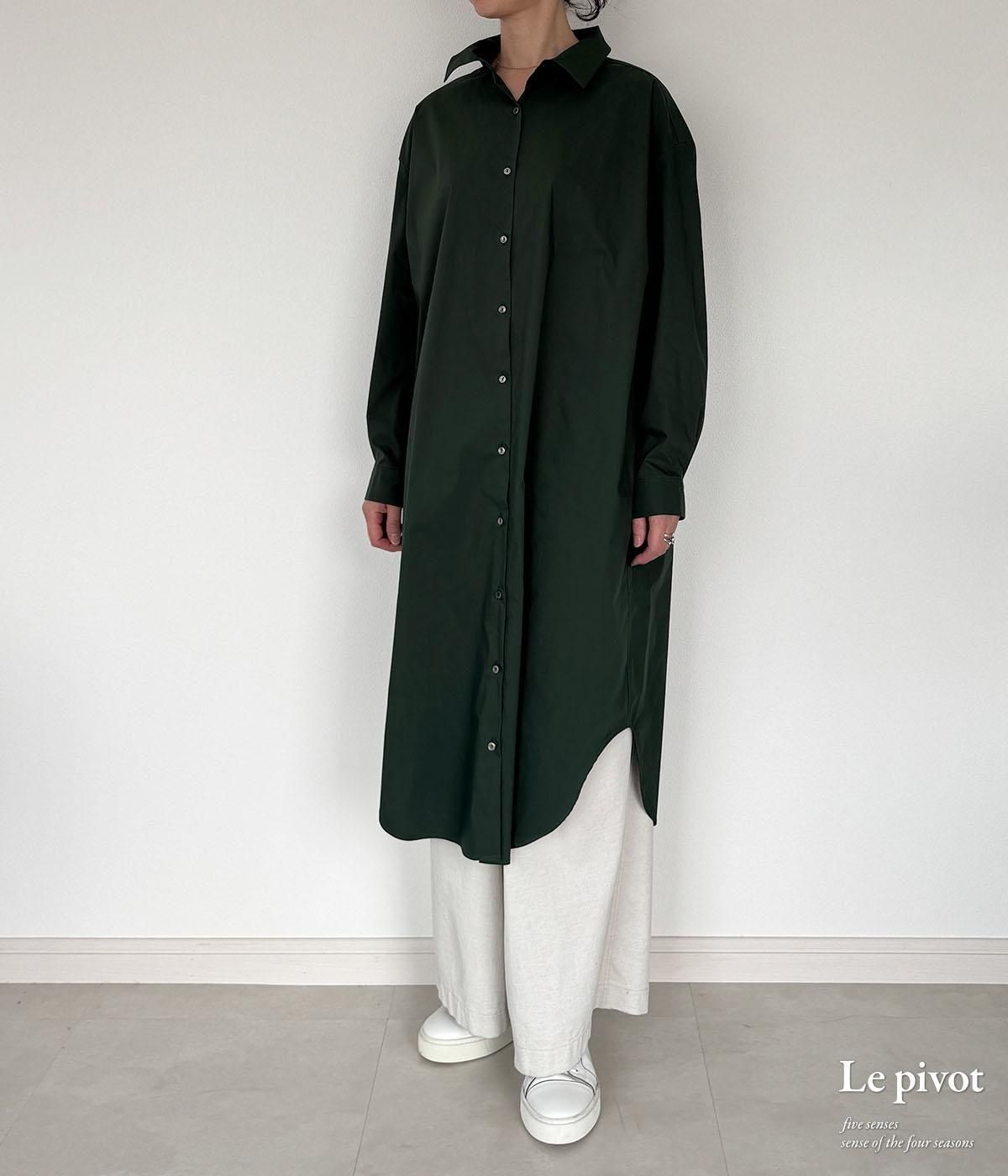 丈の長いシャツワンピースはシンプルなものほど、1枚あると着回しが効いてとても便利です。