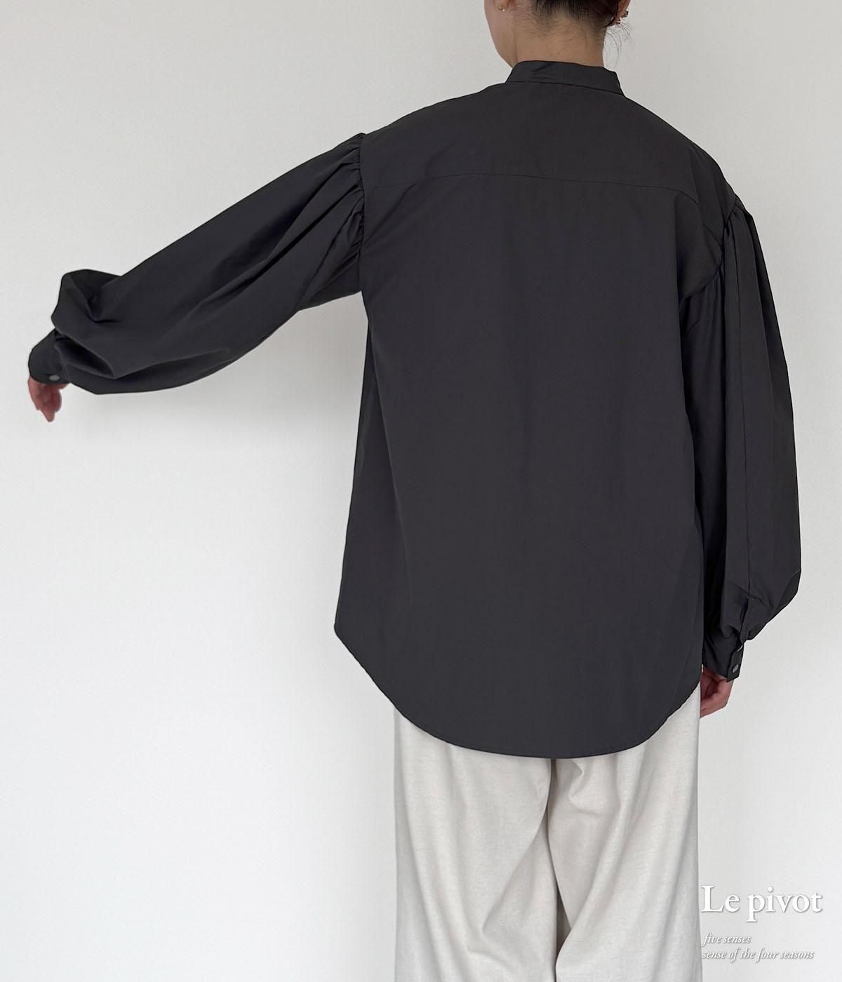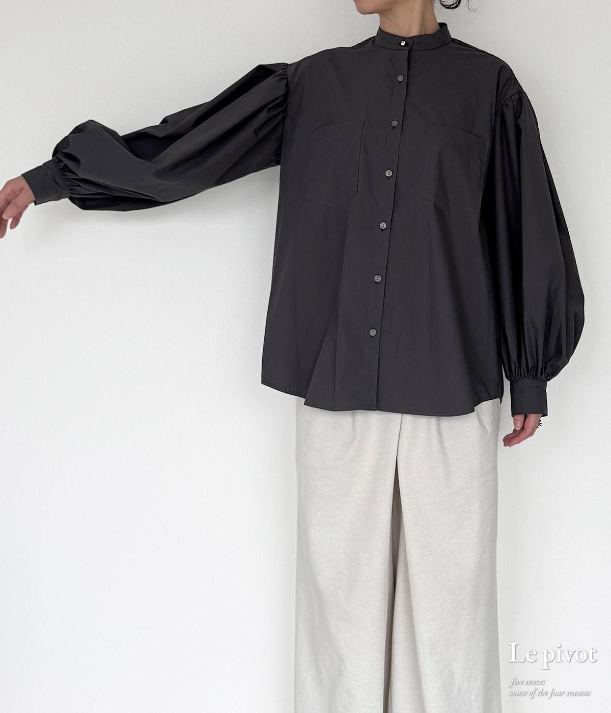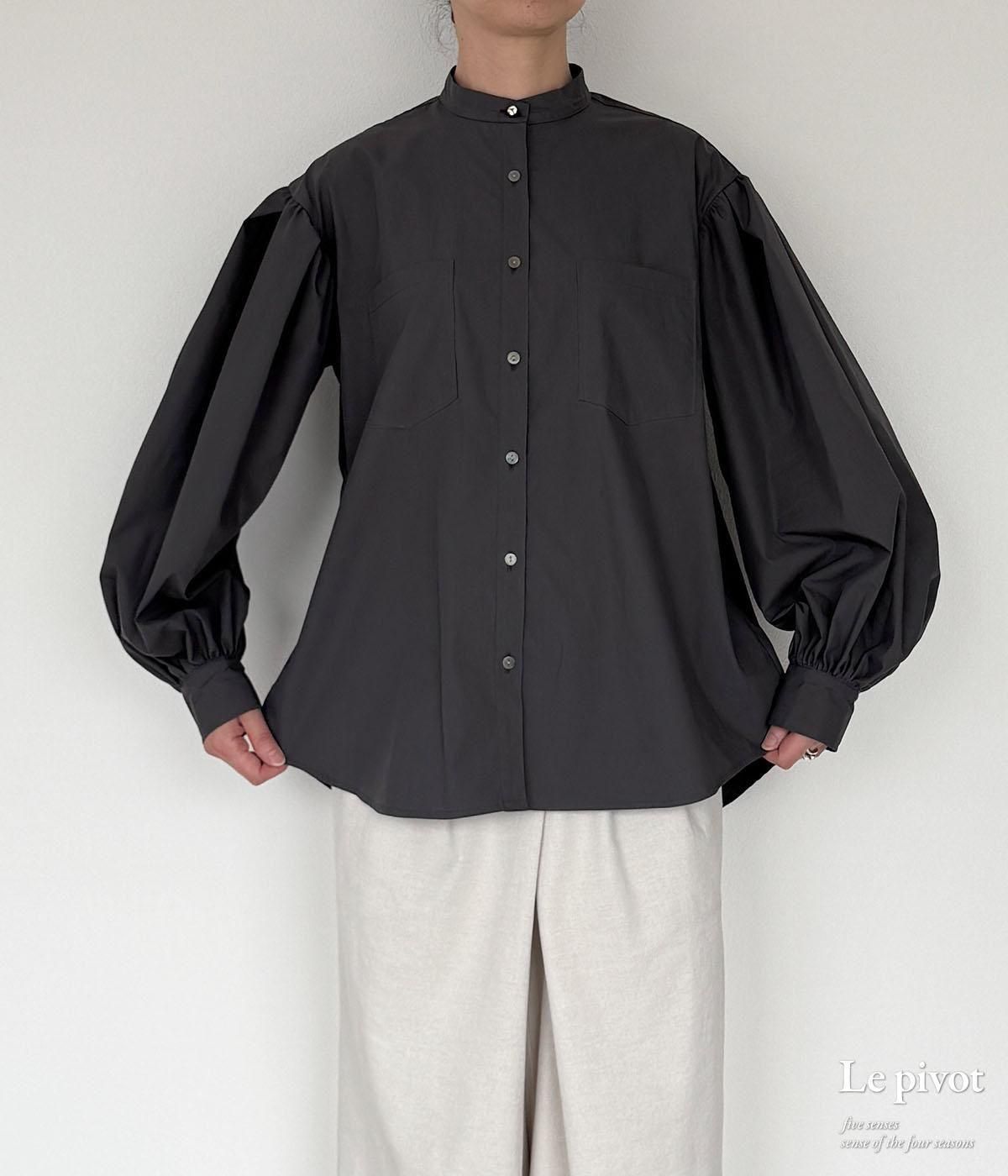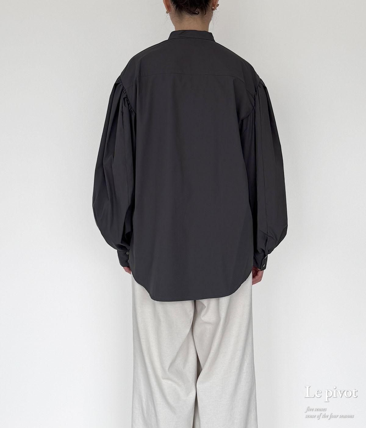 2枚袖の袖付けとカフス付けに沢山のギャザーを寄せた、ビッグスリーブがポイントのブラウスです。
