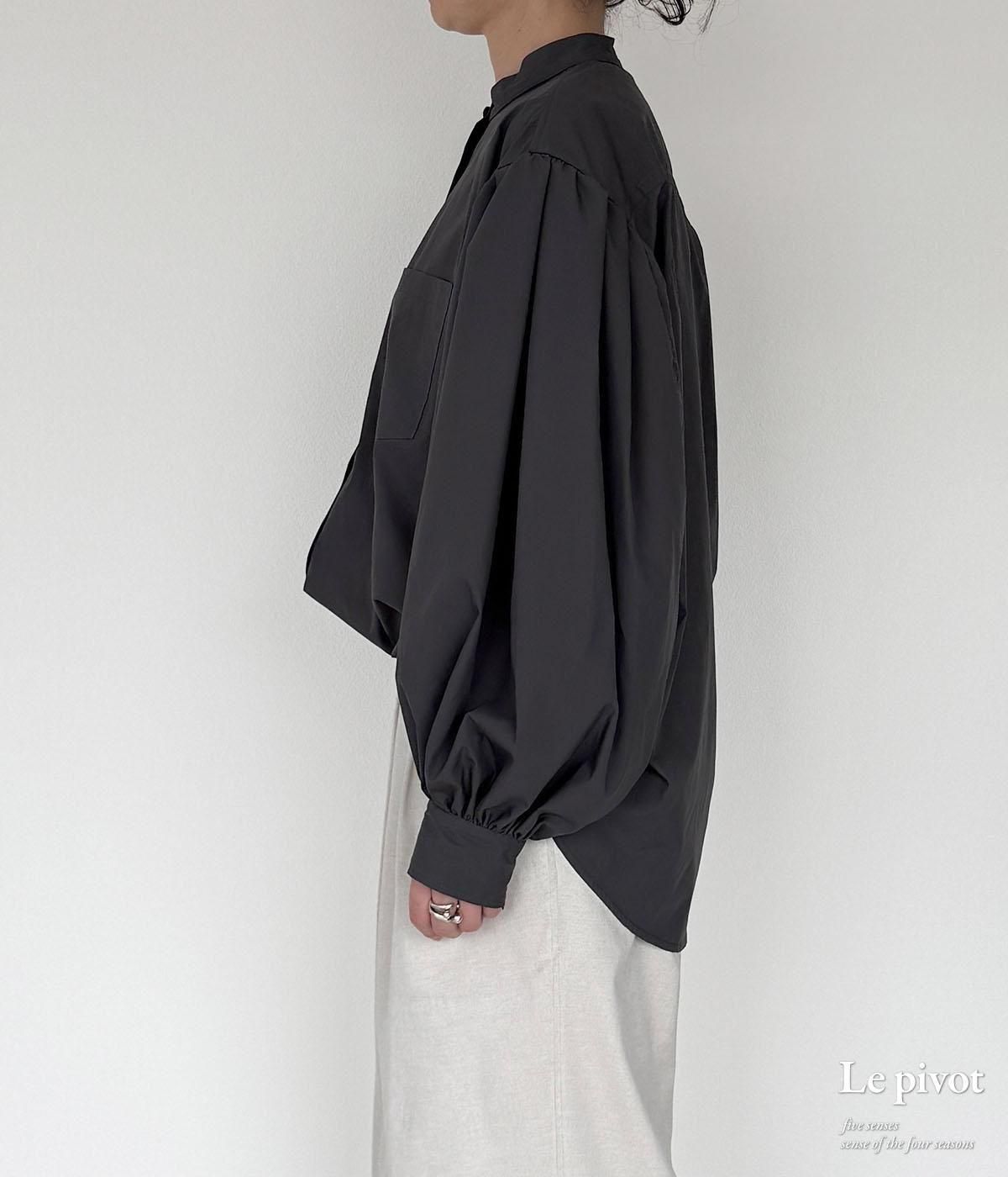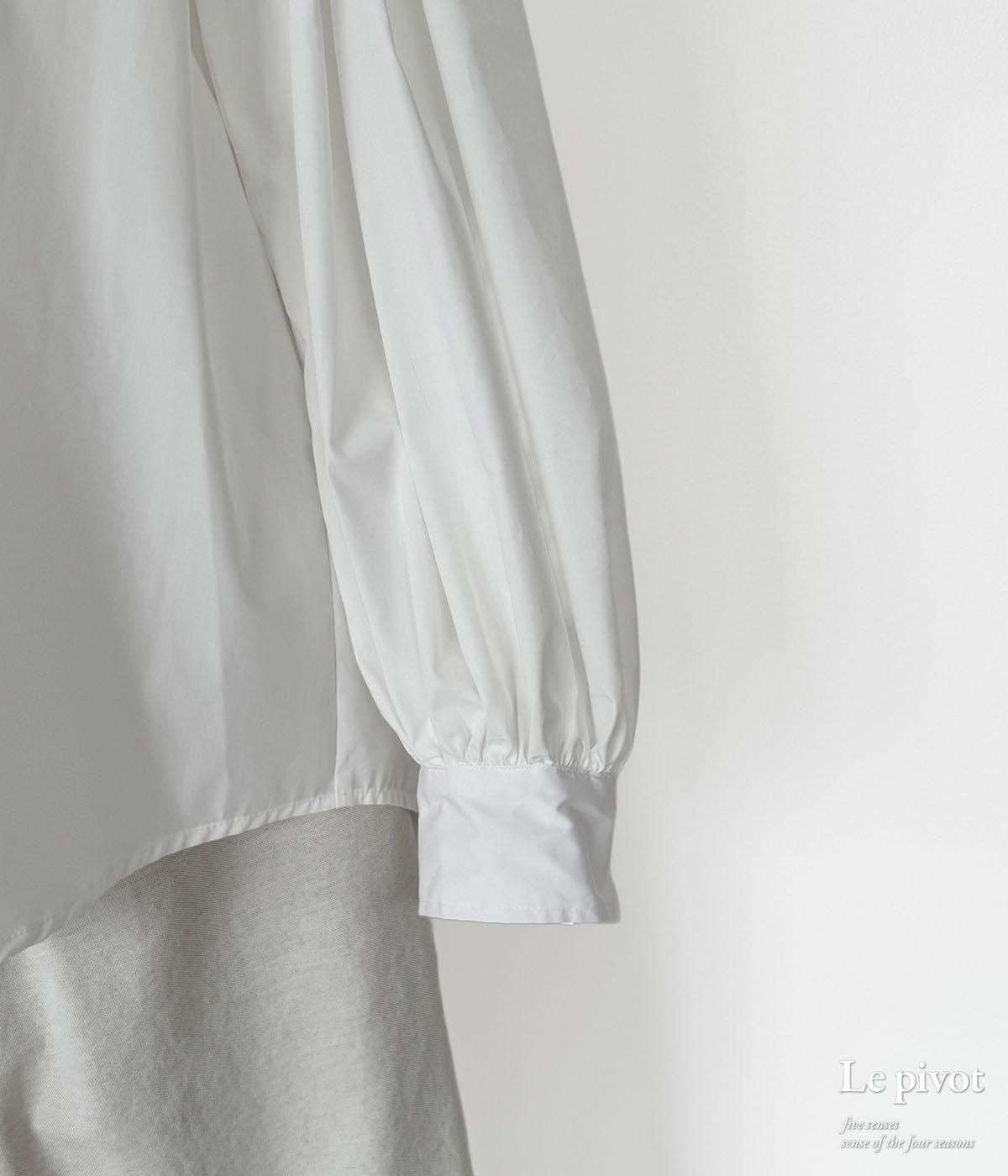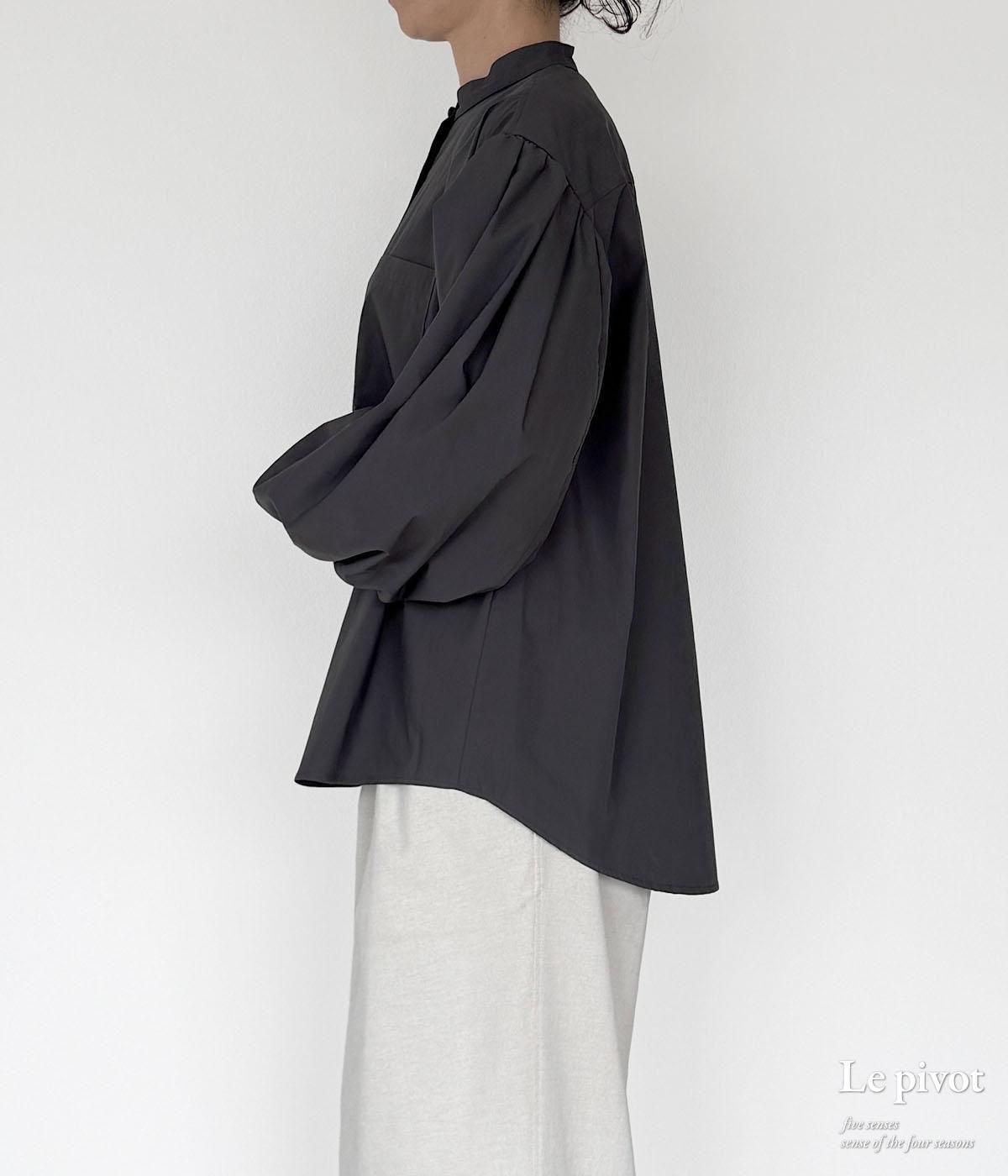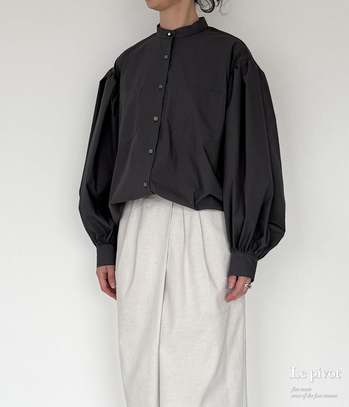 2枚袖の袖付けとカフス付けに沢山のギャザーを寄せた、ビッグスリーブがポイントのブラウスです。