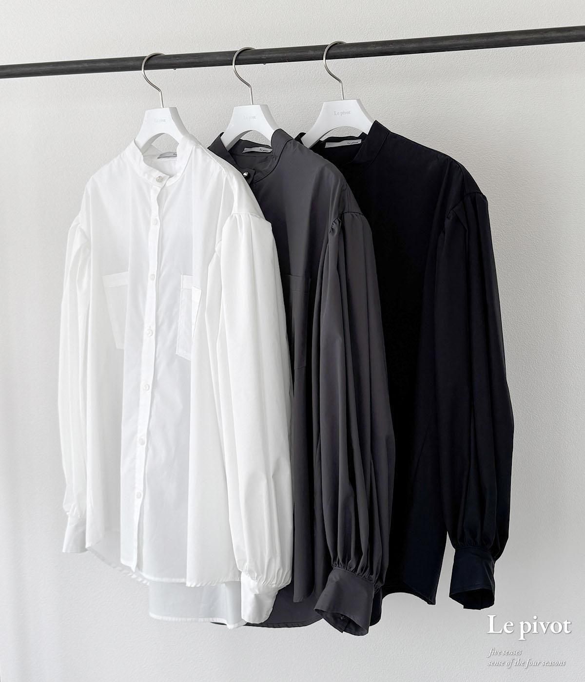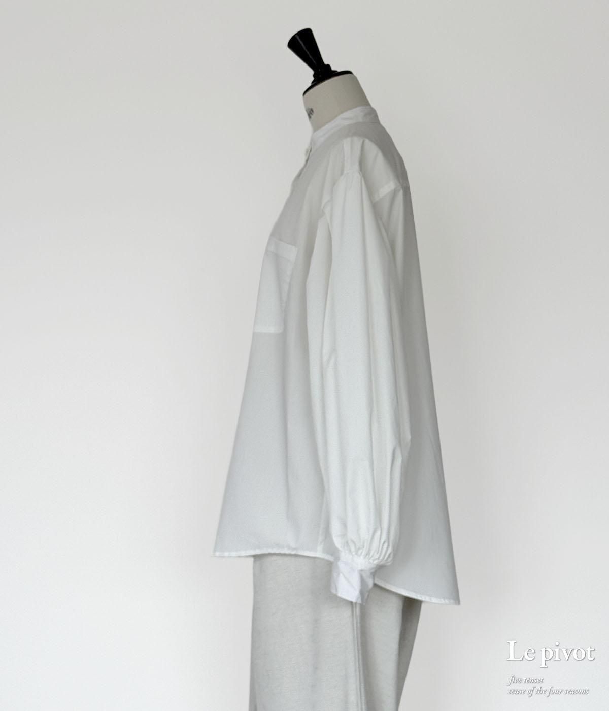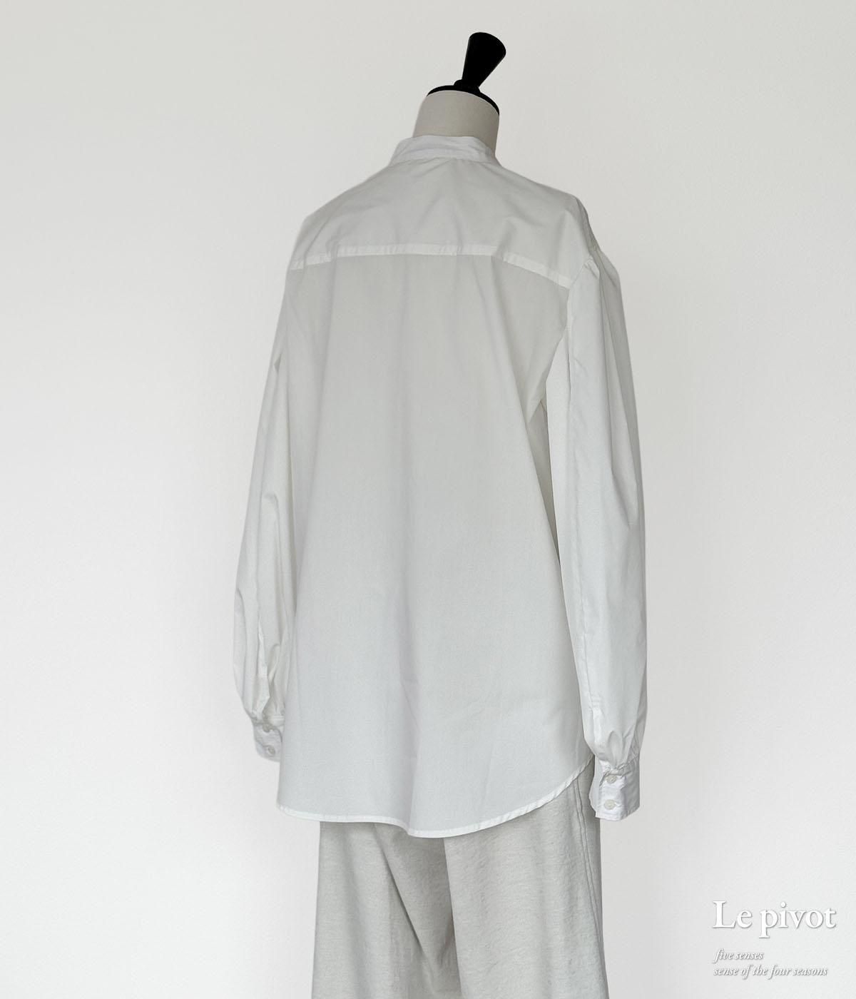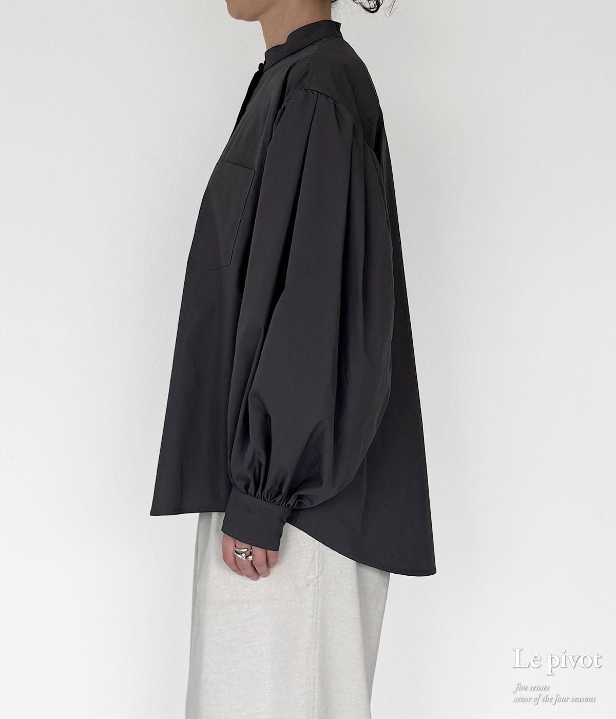 2枚袖の袖付けとカフス付けに沢山のギャザーを寄せた、ビッグスリーブがポイントのブラウスです。