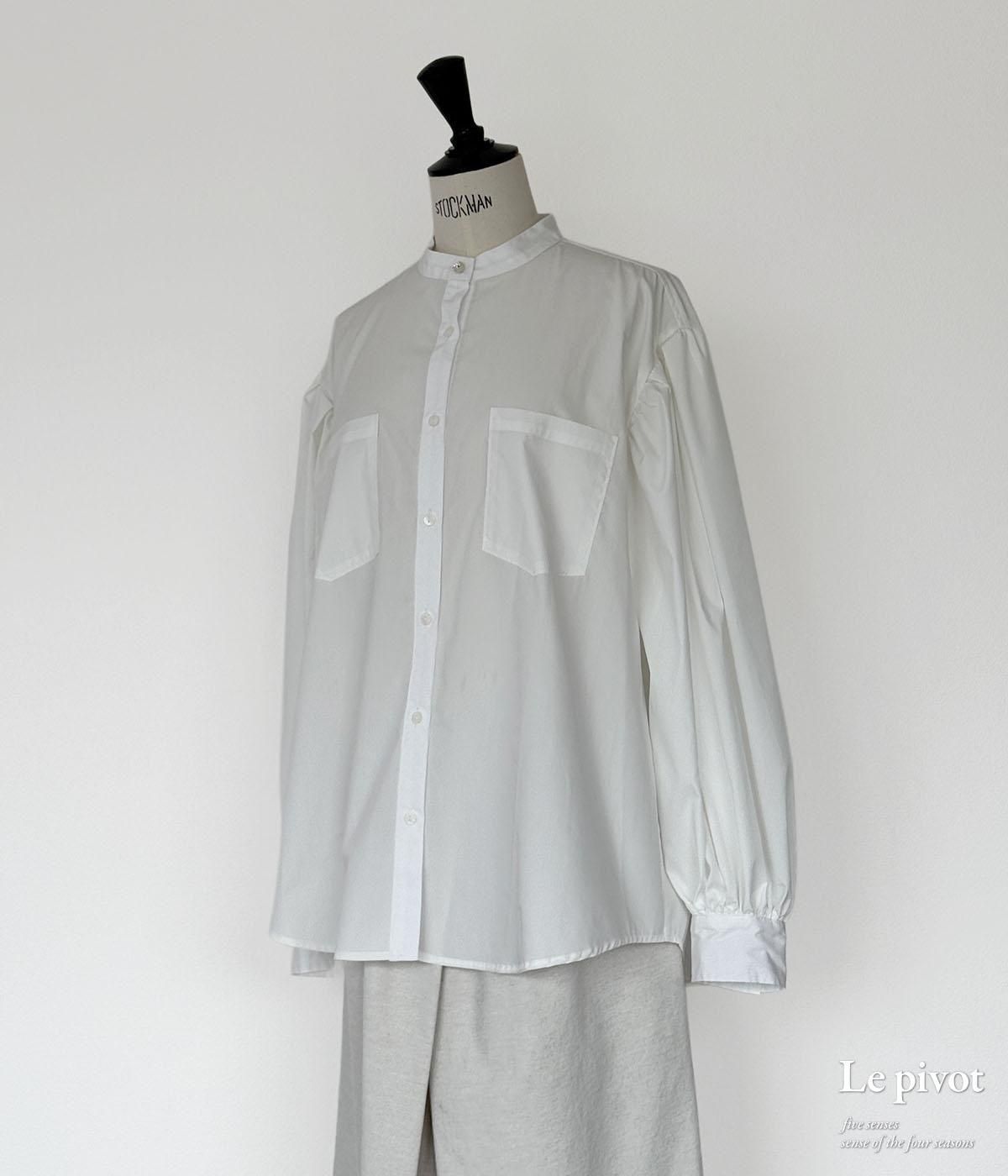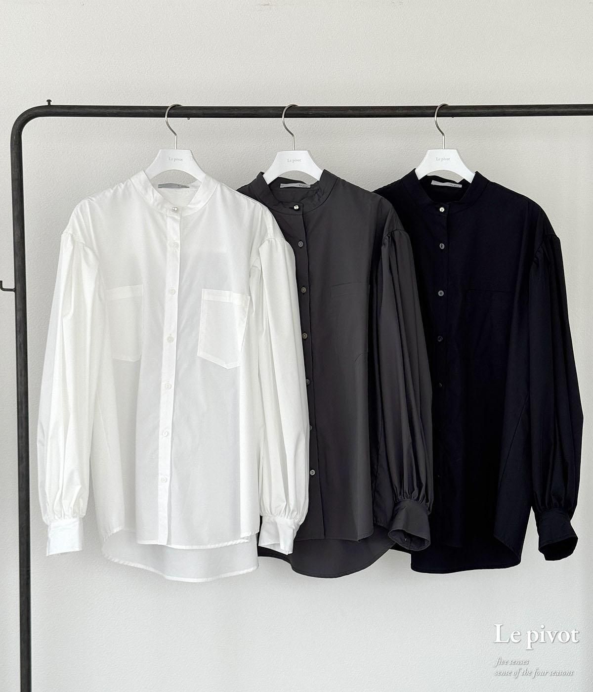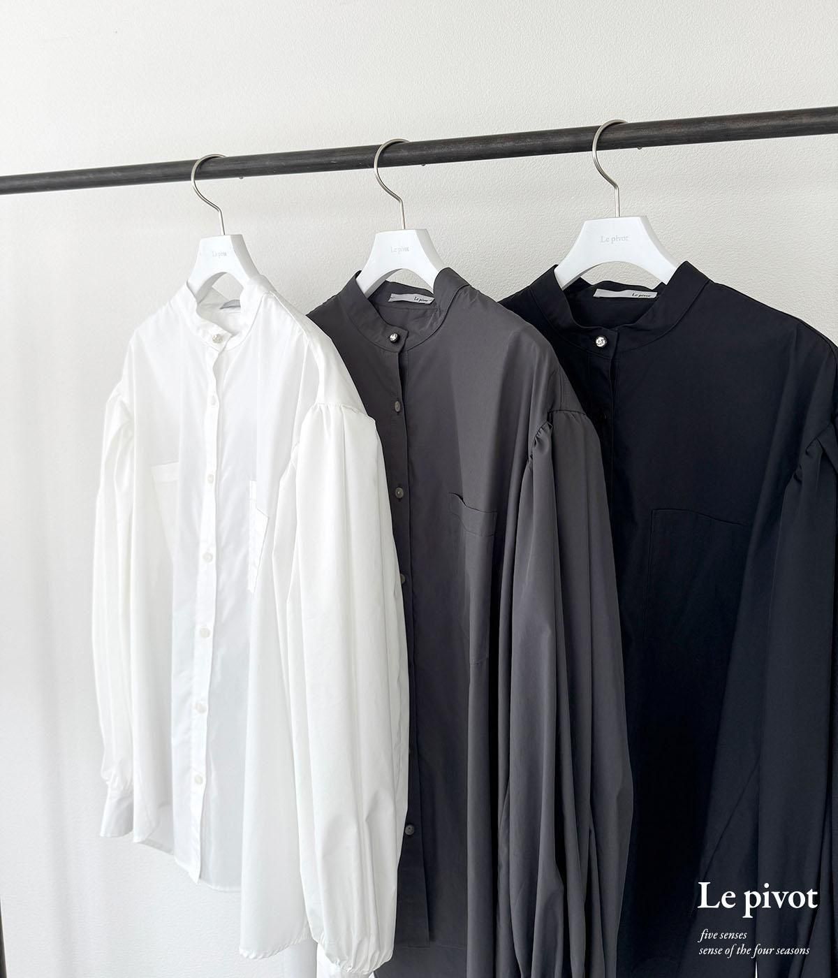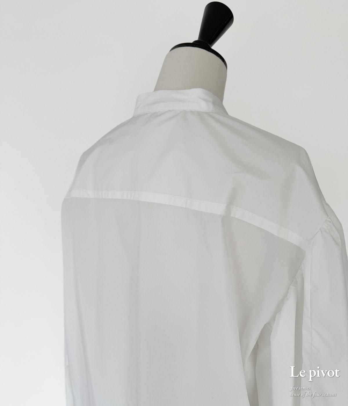 2枚袖の袖付けとカフス付けに沢山のギャザーを寄せた、ビッグスリーブがポイントのブラウスです。
