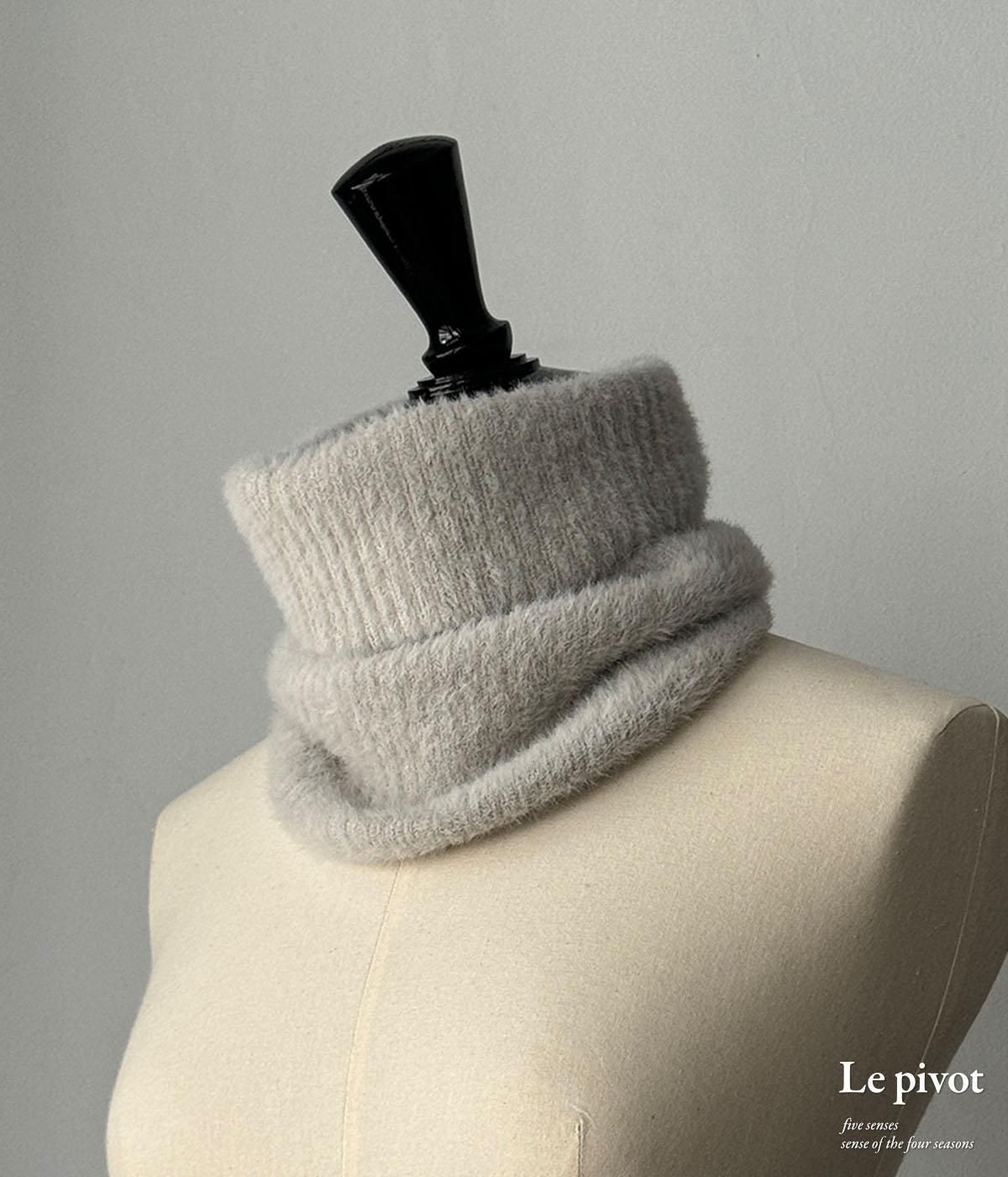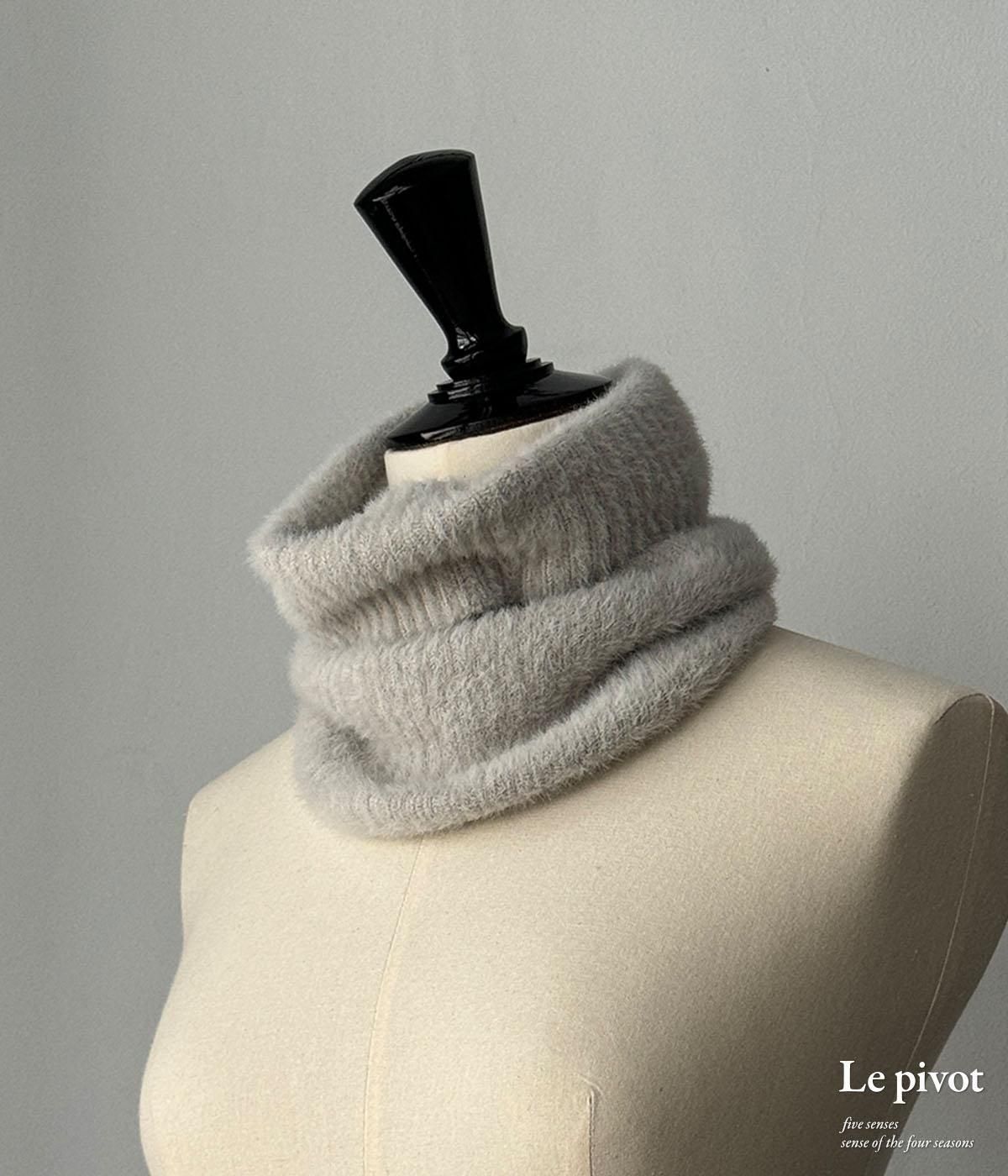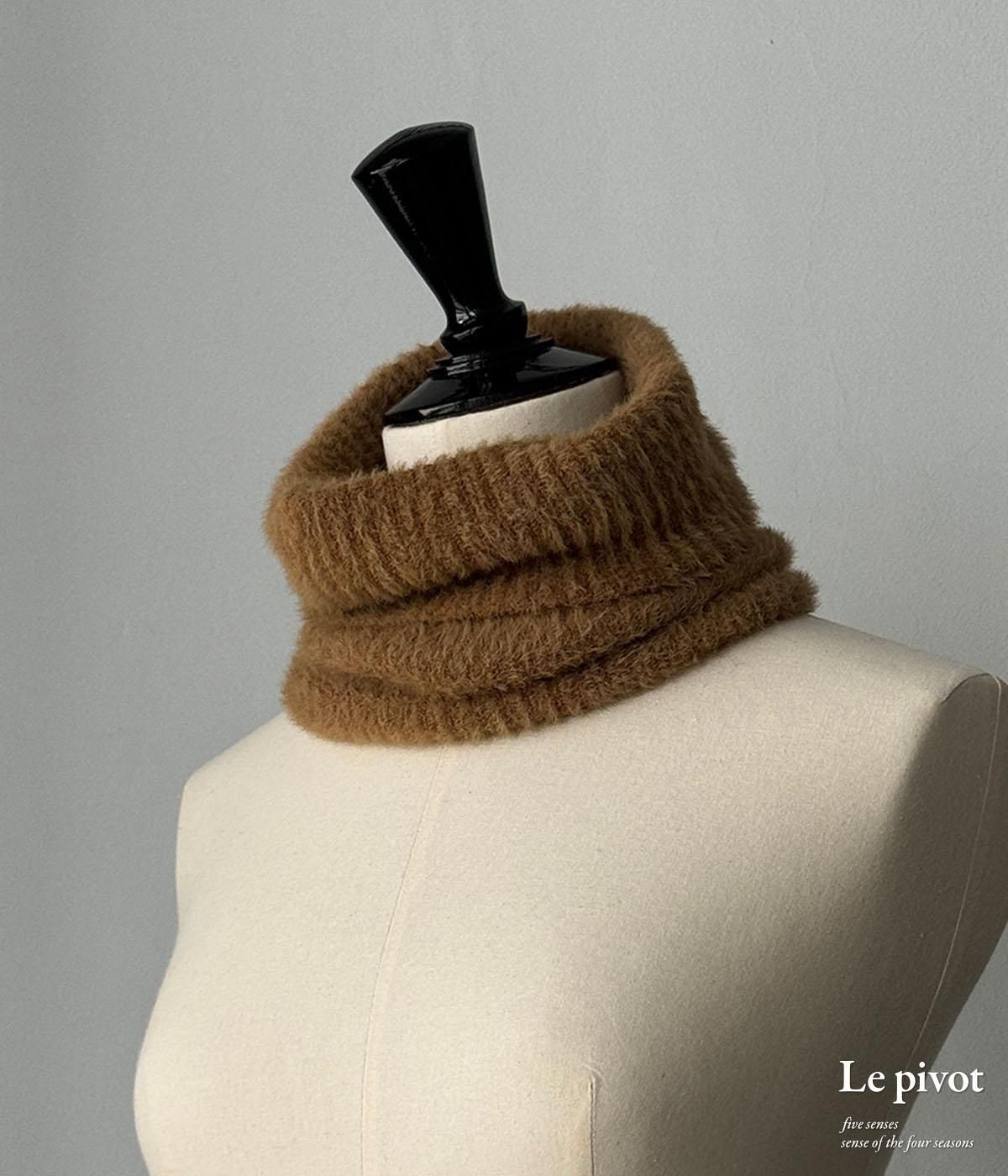 クルーネックのニットや、シャツの衿もと、少しだけ何かを首元に巻きたい時や、さっと防寒にしたい時などに、気軽に使えるネックウォーマーです。