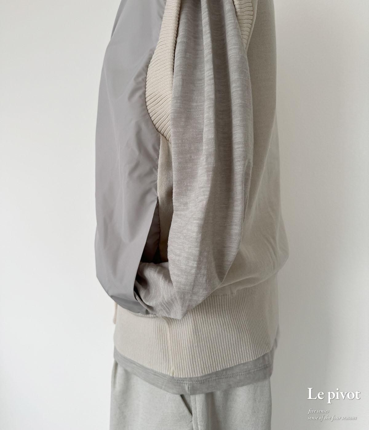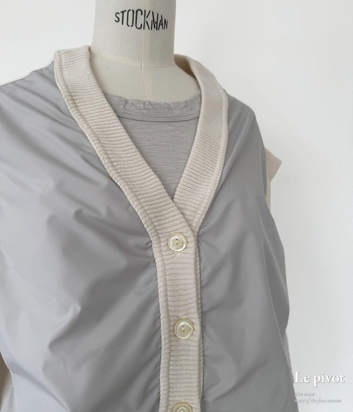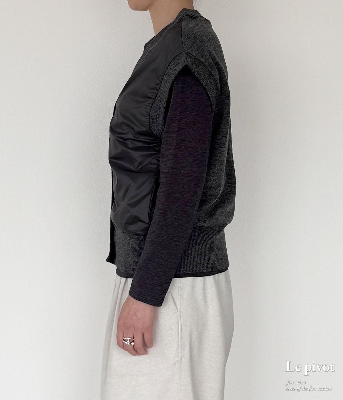 前身頃にポリエステルの布帛を2枚仕立てで使用しています。