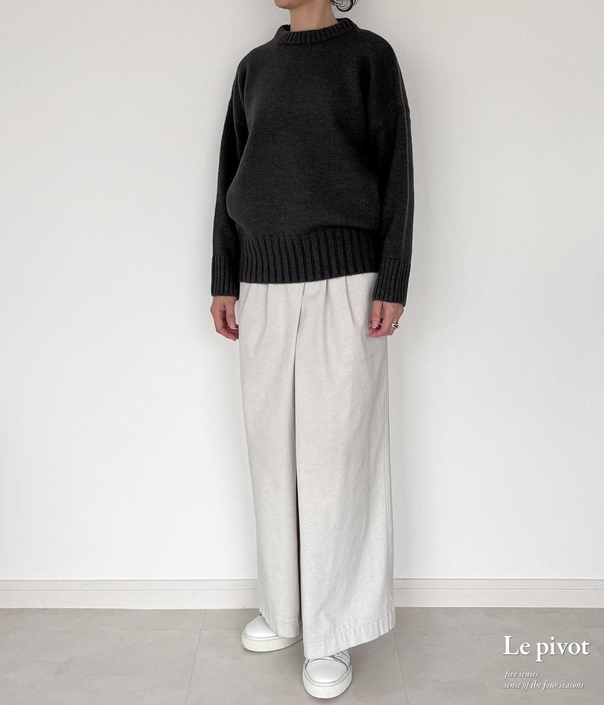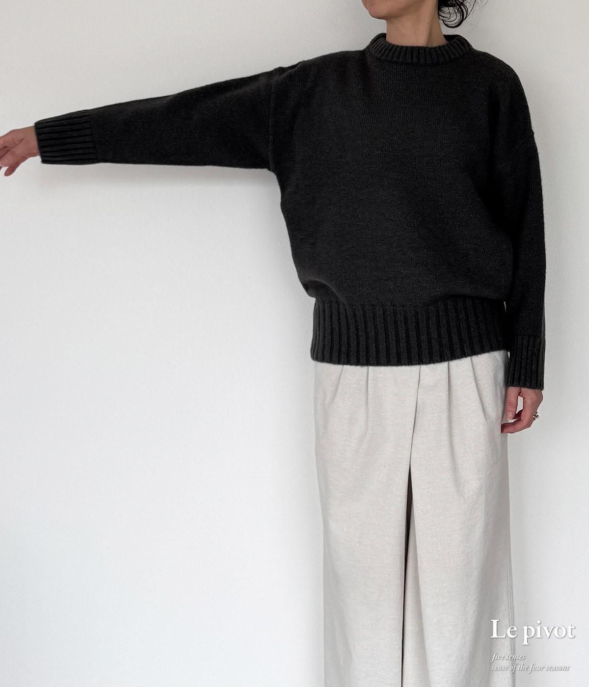 シンプルなクルーネックニットですが、上質な糸でつくったベーシックアイテムこそ出番も多く、毎日のように手に取ってしまうアイテムです。
