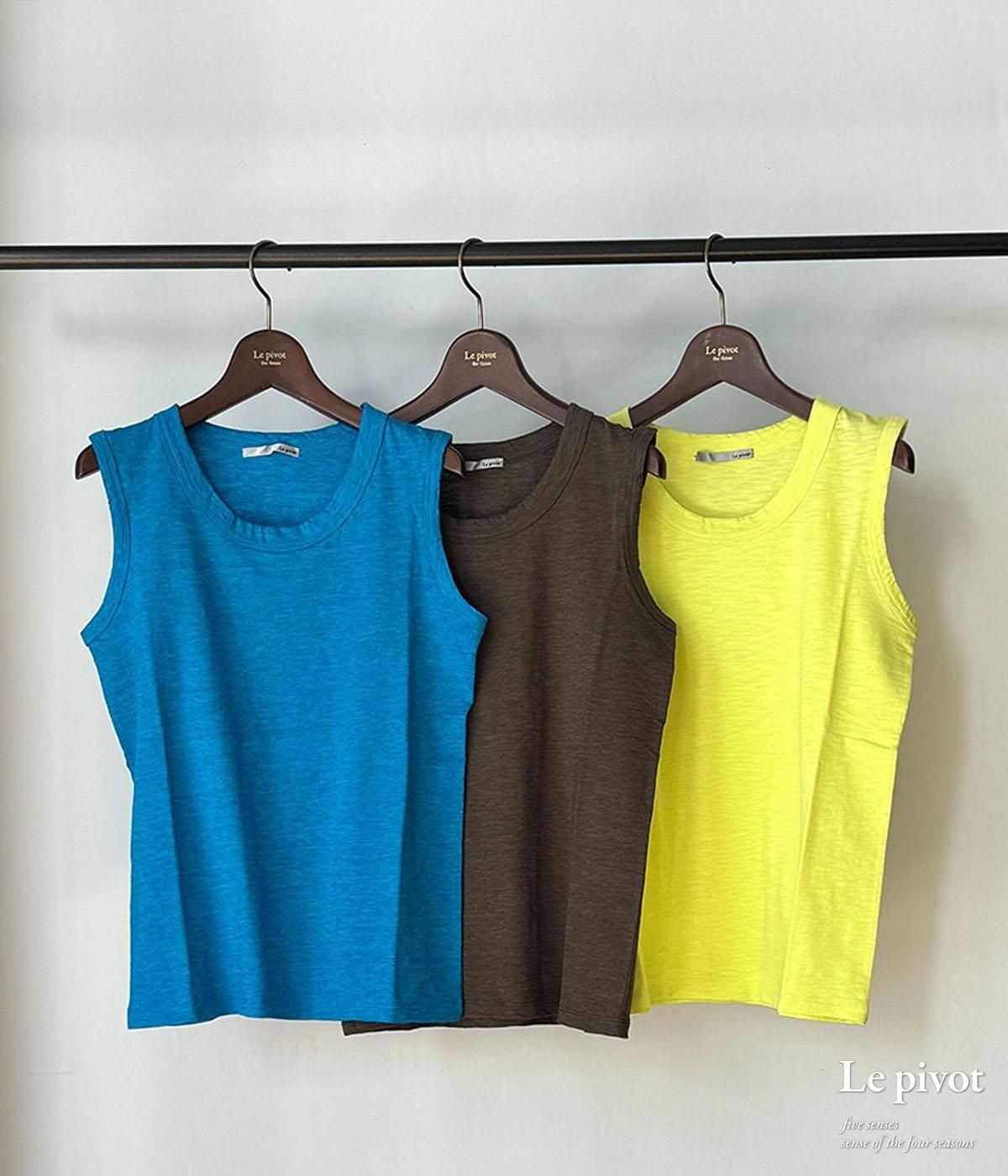 以前より人気のあったムラのある綿糸使用の天竺。タンクトップの新色のページです。