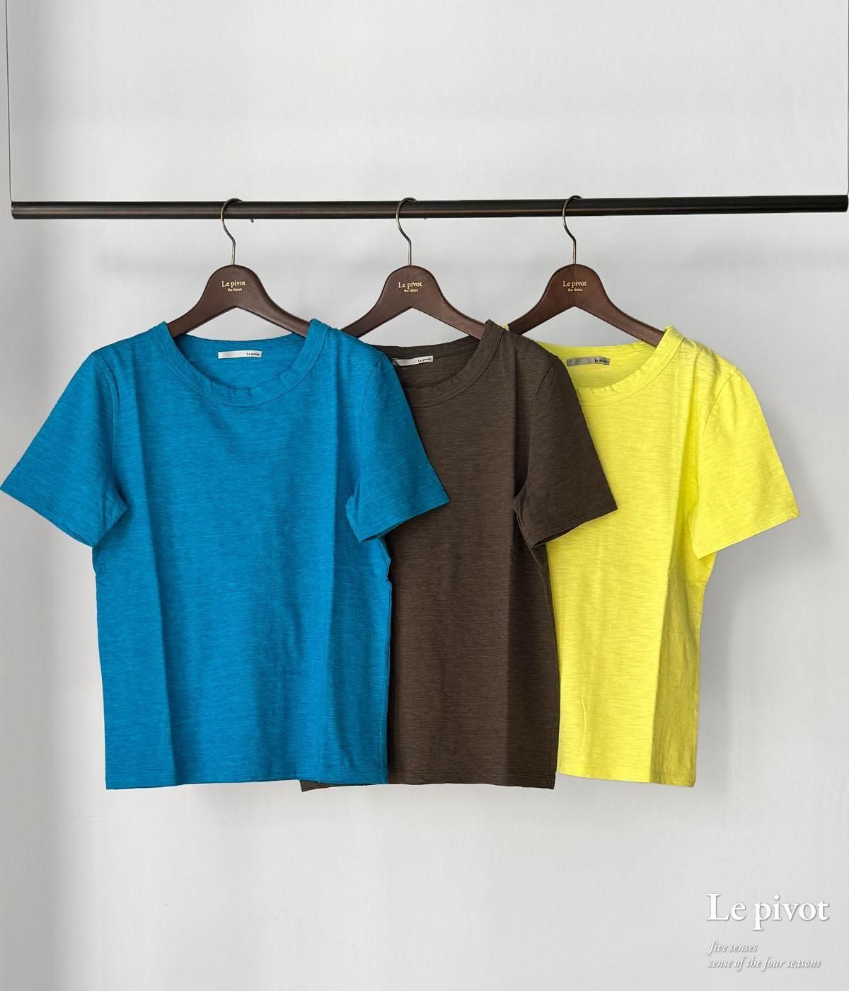 以前より人気のあったムラのある綿糸使用の天竺。クルーTの2024SS新色ページです。
