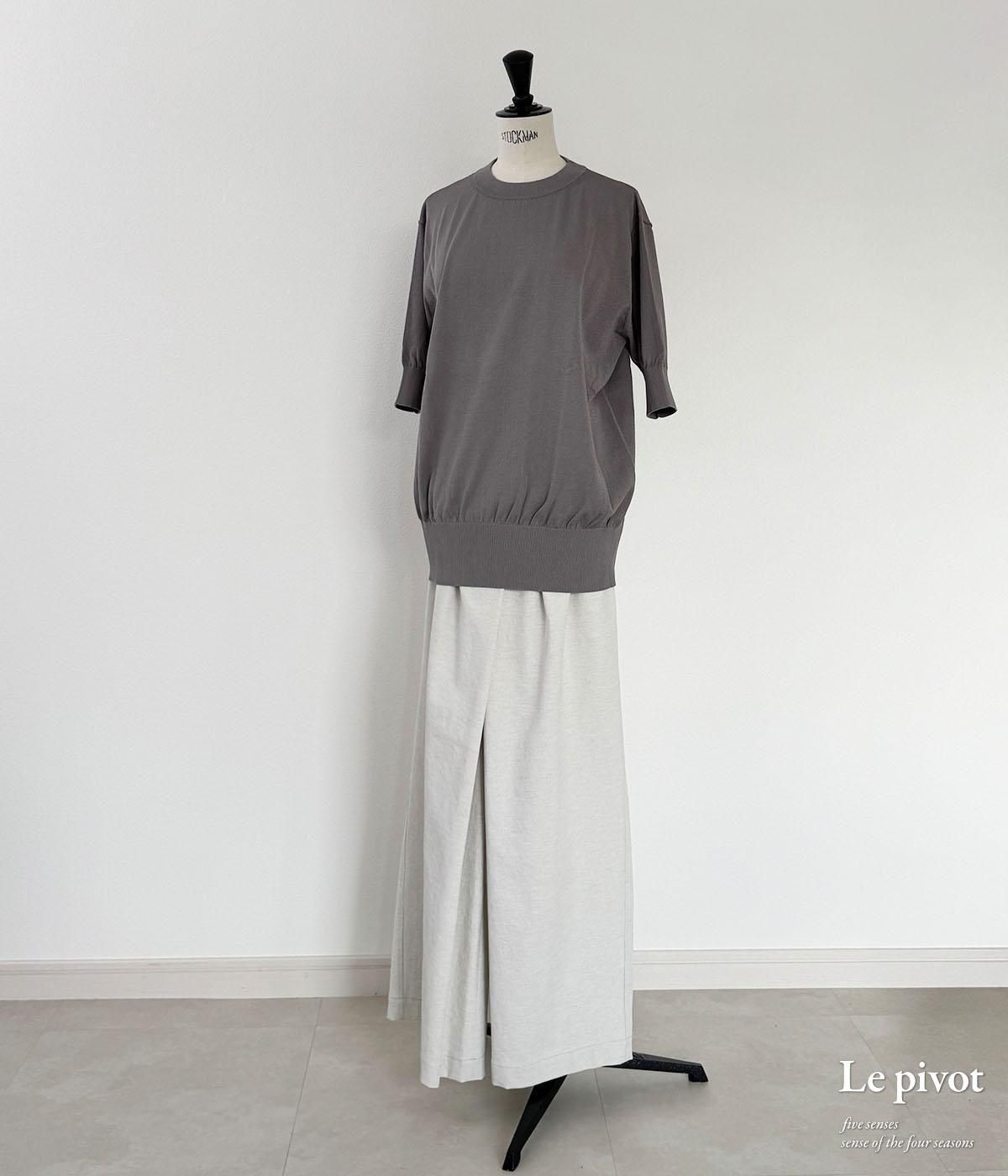 夏につくるサマーニットは、初夏にはインナーとして、真夏は1枚で着られる素材とサイズ感を意識して作っています。派手さはなく目立たないですが、つい手に取りたくなる1枚です。