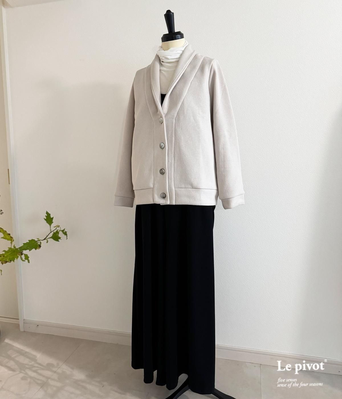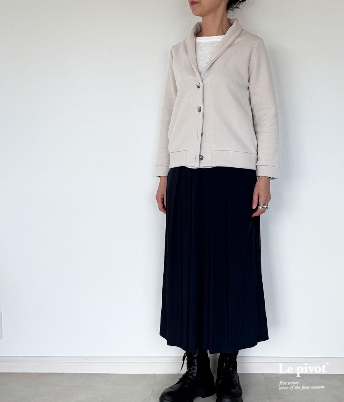 ちょっと羽織るのに便利で、ジャケットのようなきちんと感も出るカーディガンです。