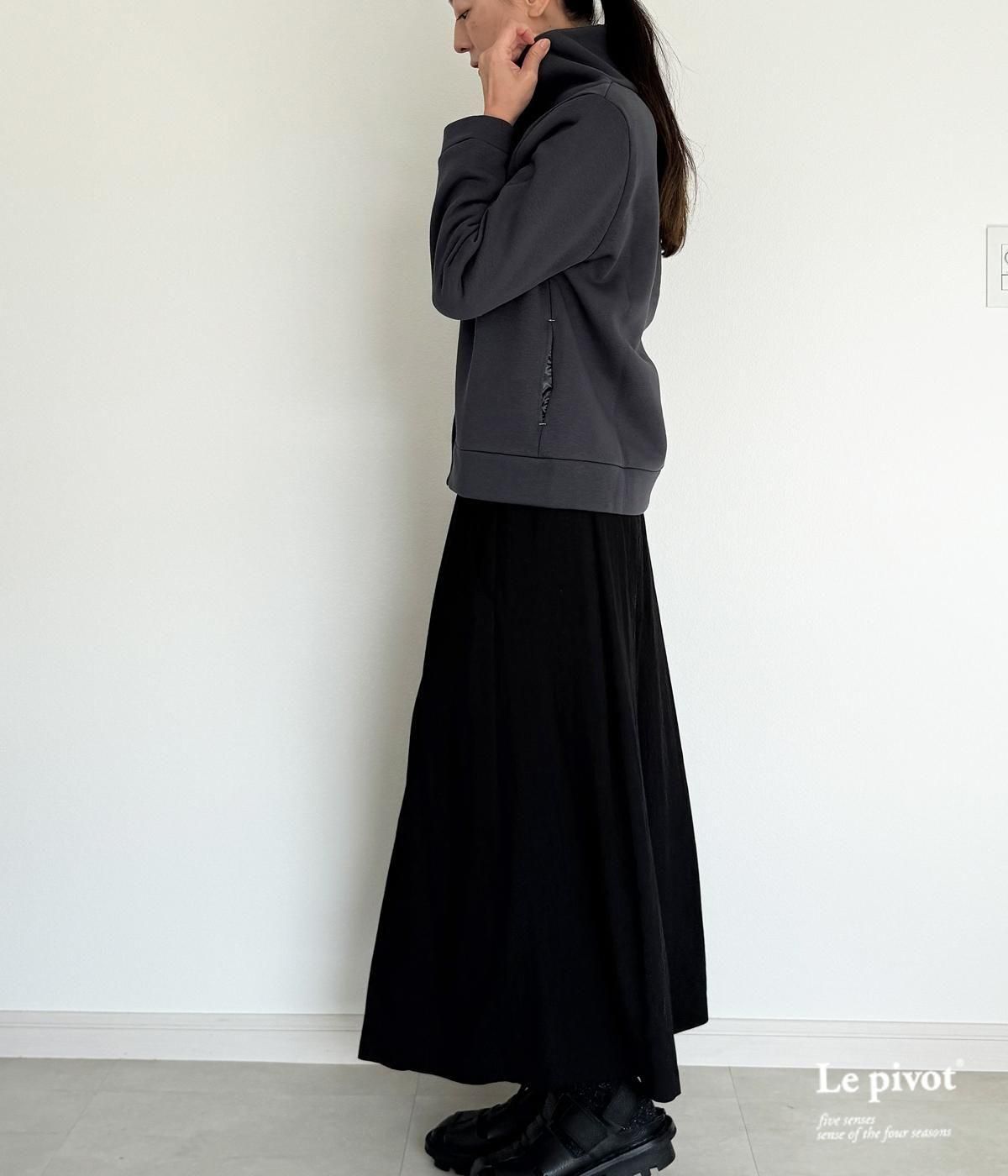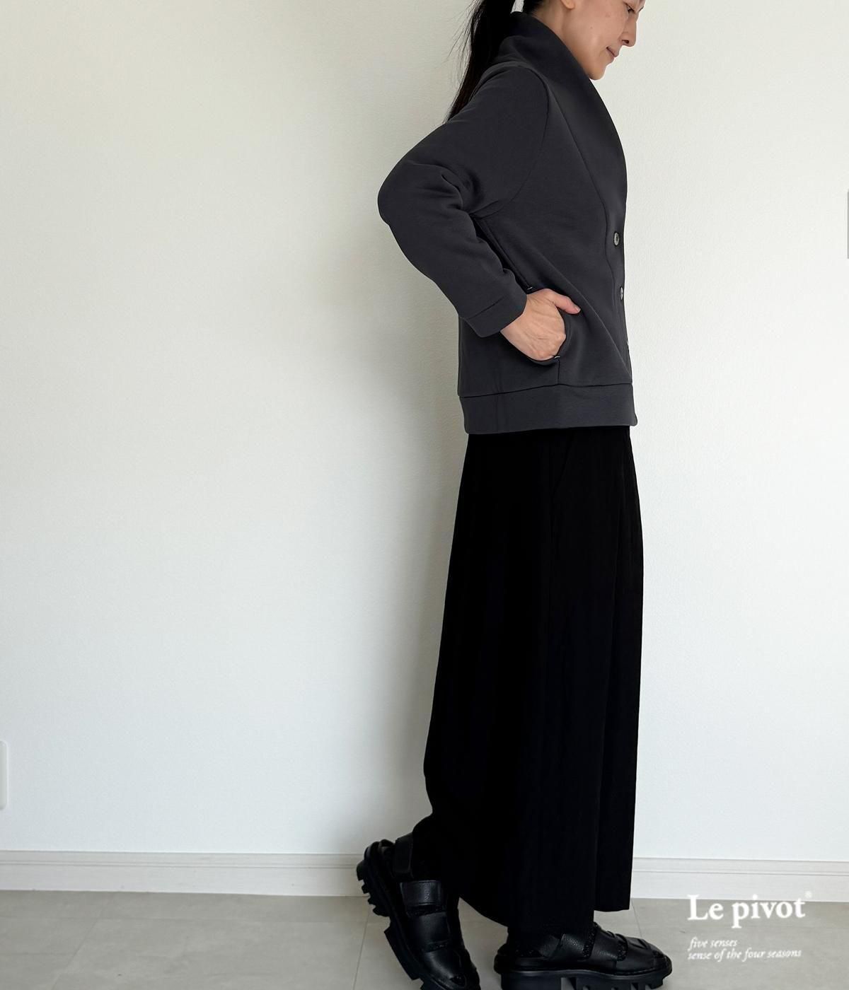 チャコール着用164cm:インナー5230ヴィンテージ天竺L/S-T・10-オフ白、5436・レーヨン/ナイロンキュロット・19-ブラック