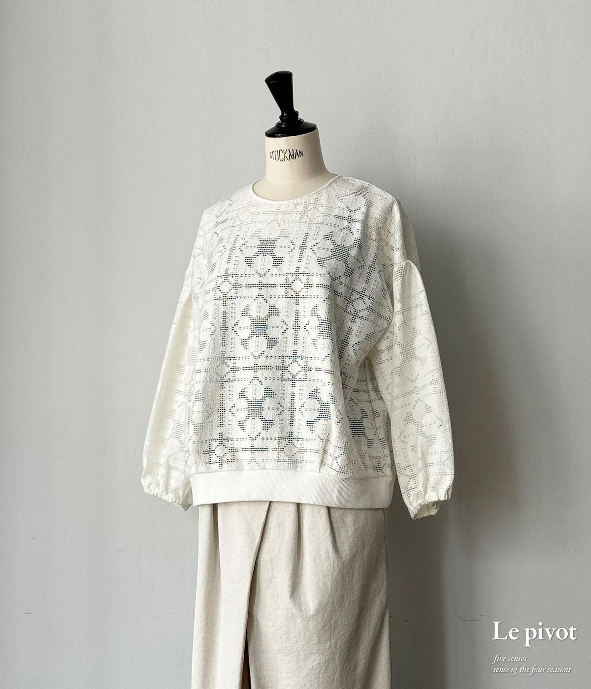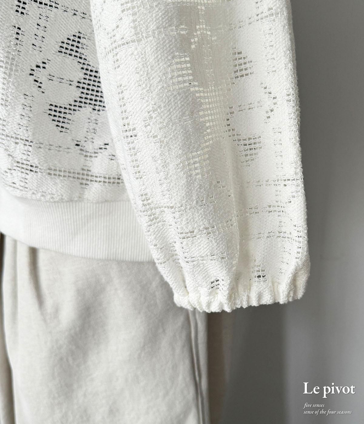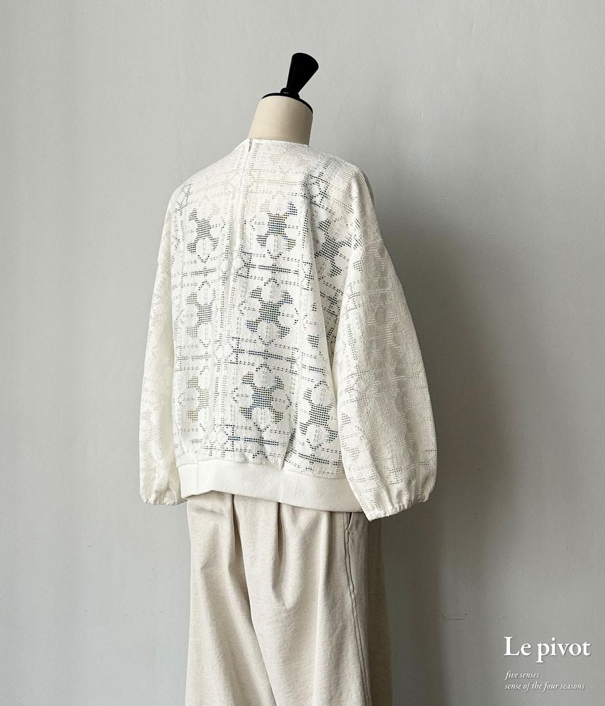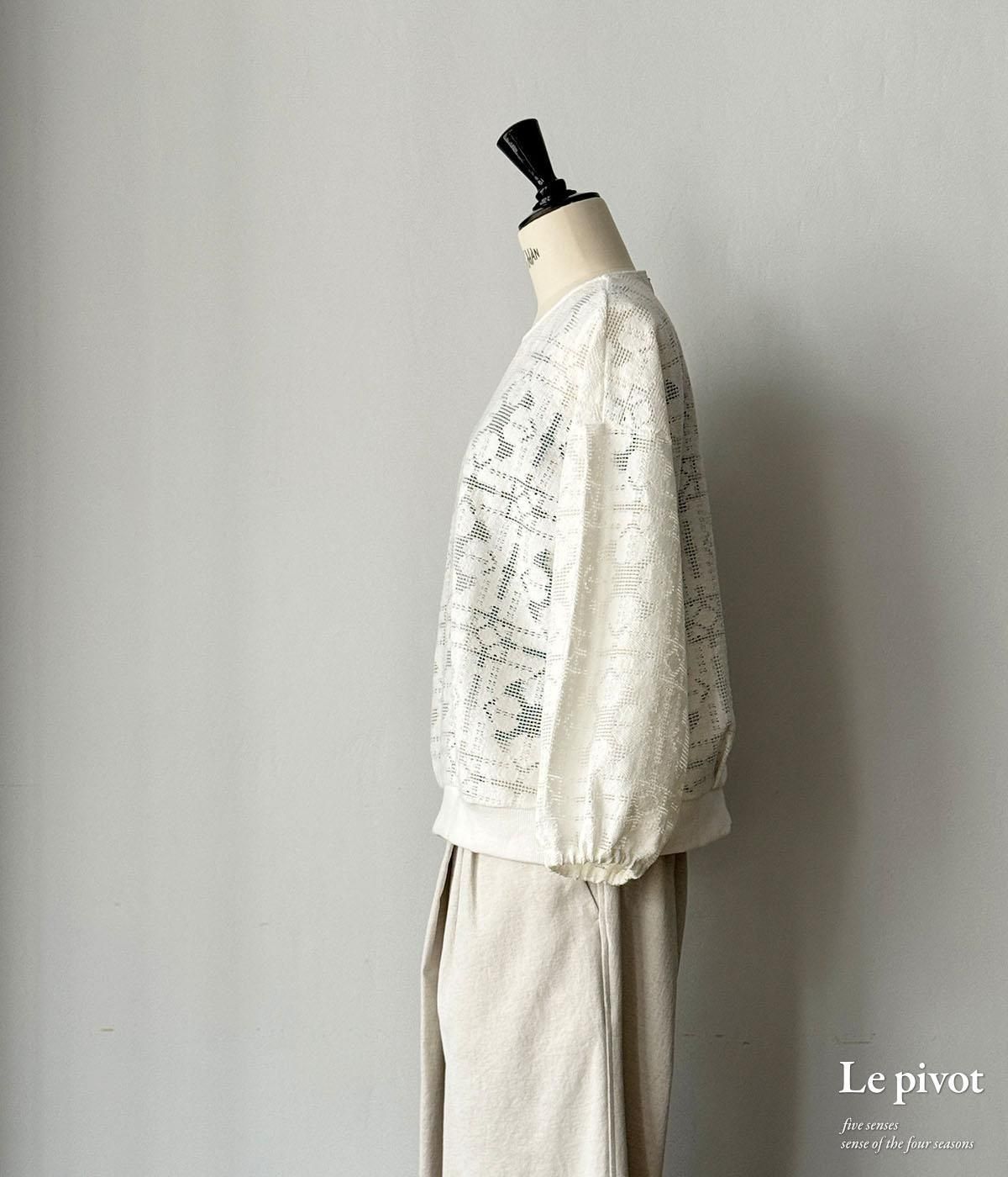 コットンレースのギャザースリーブクルーネックです。