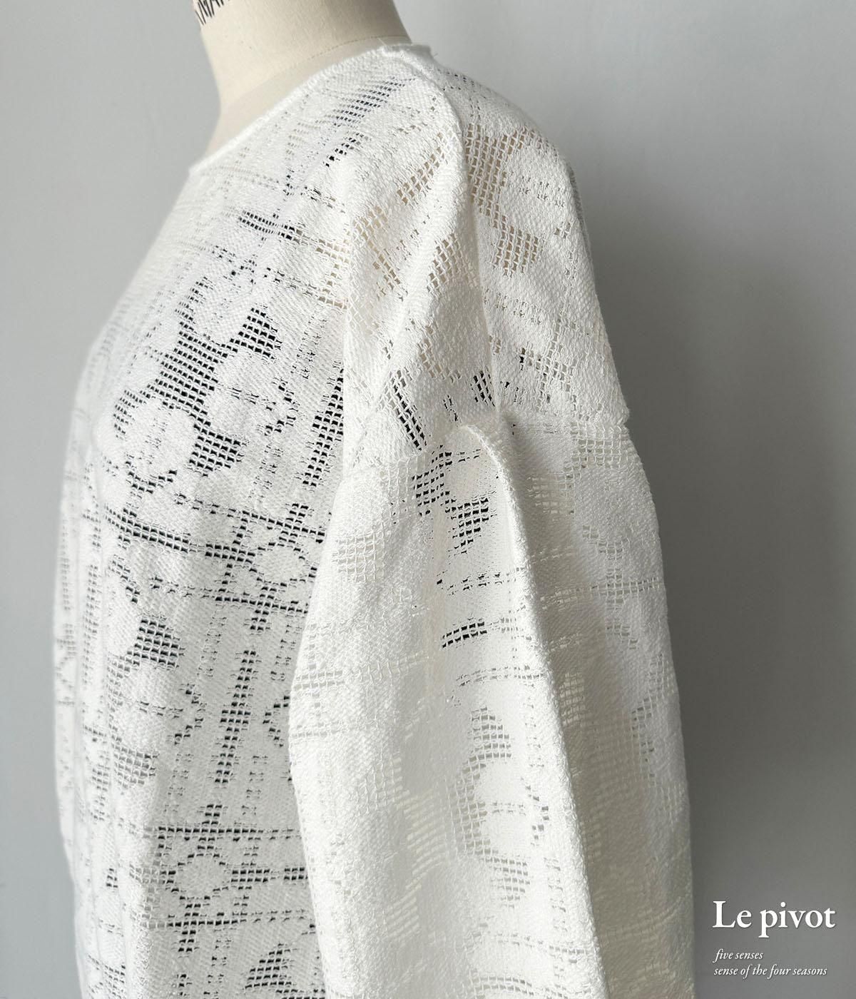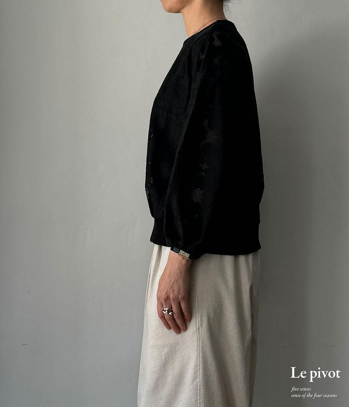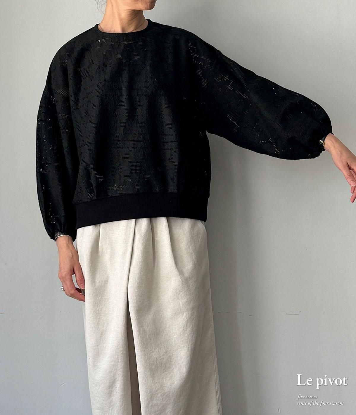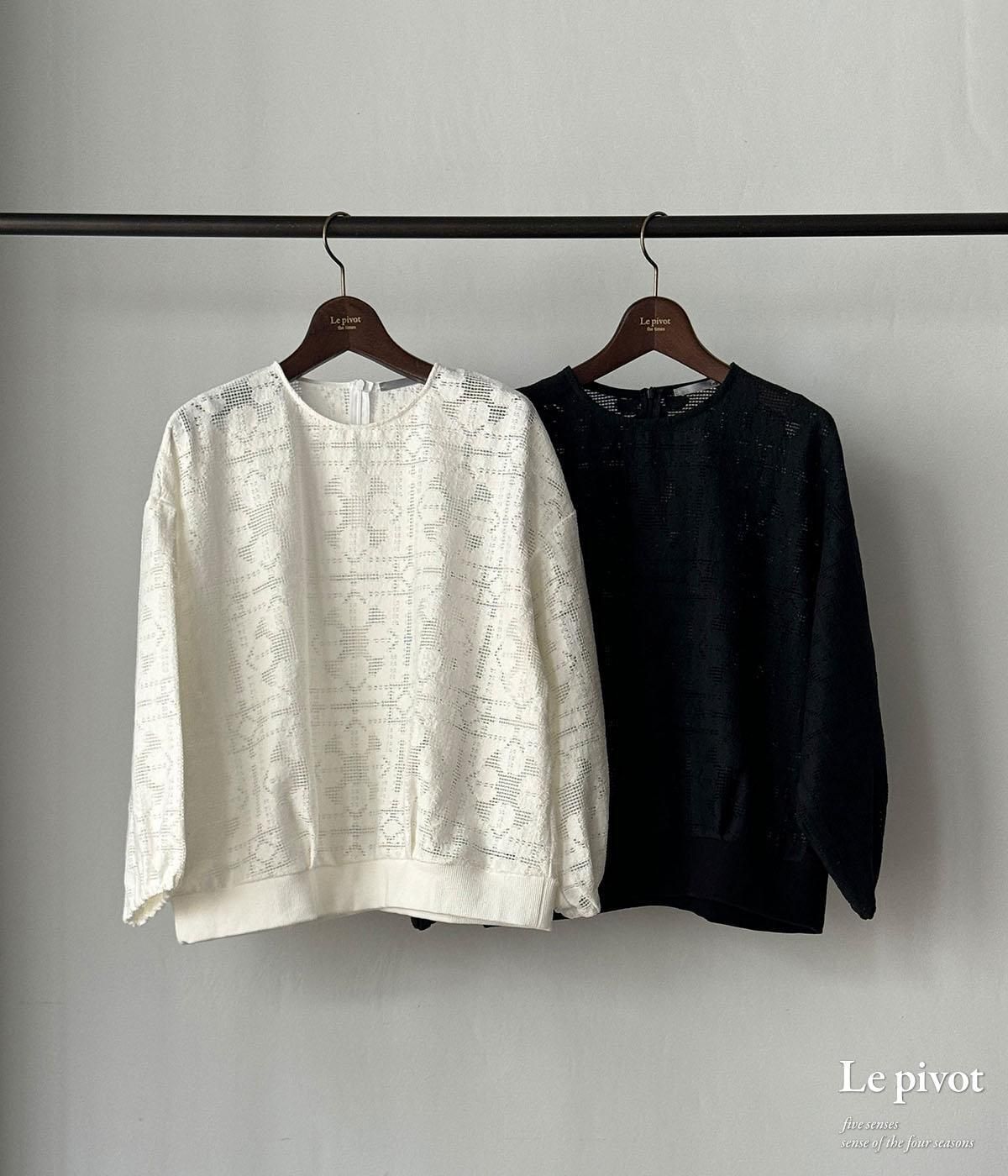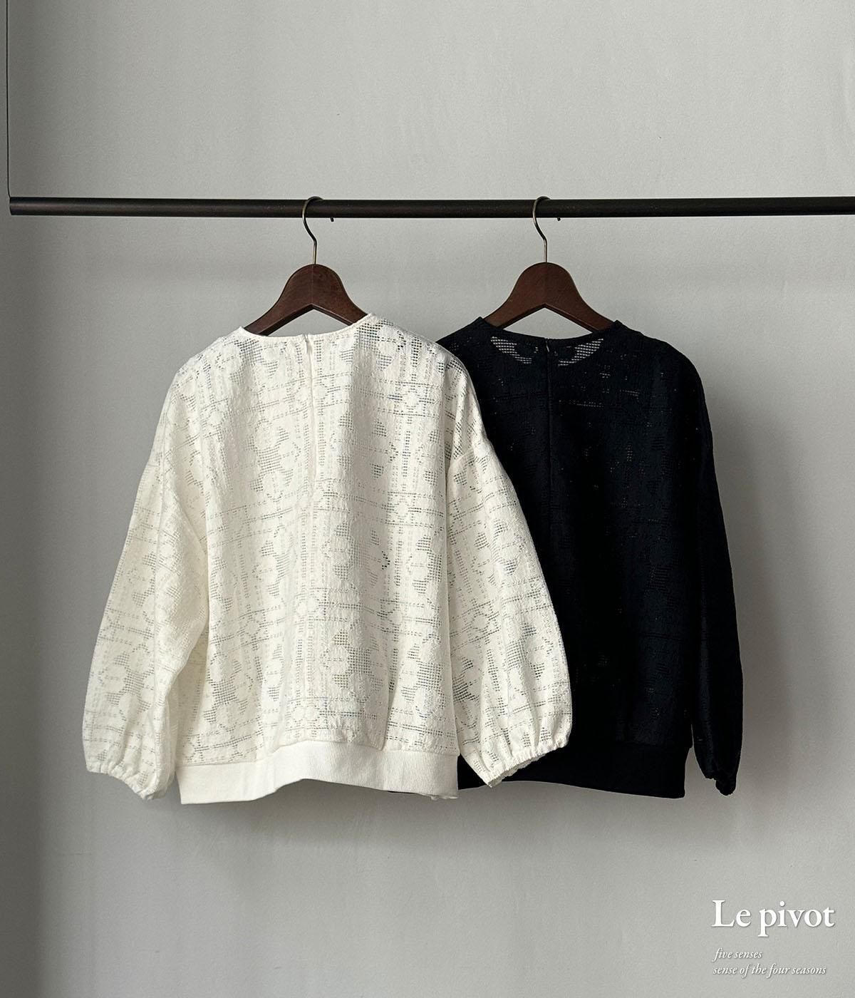 コットンレースのギャザースリーブクルーネックです。