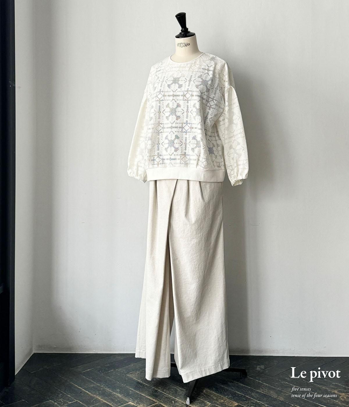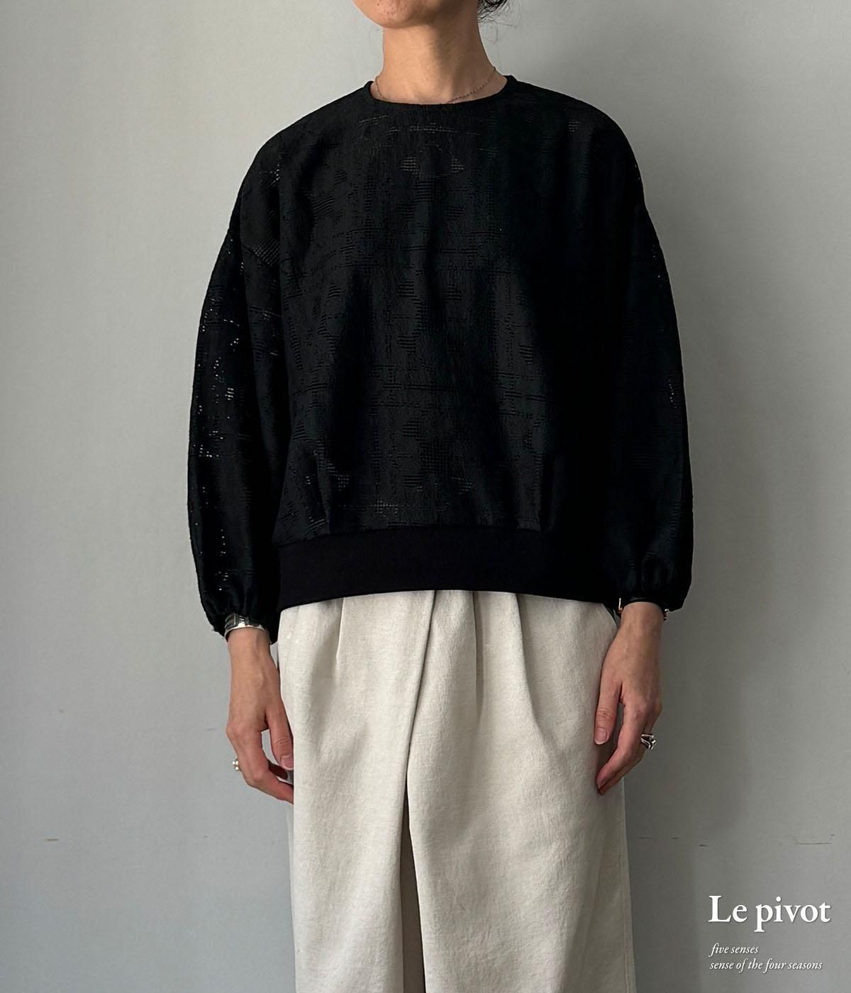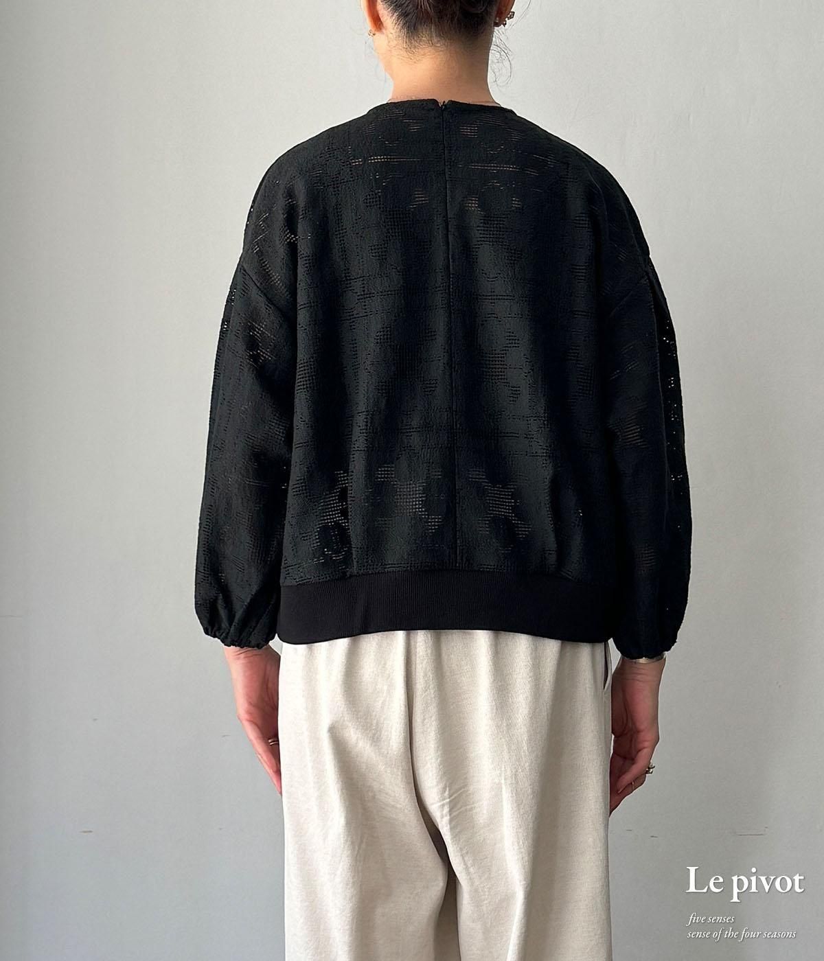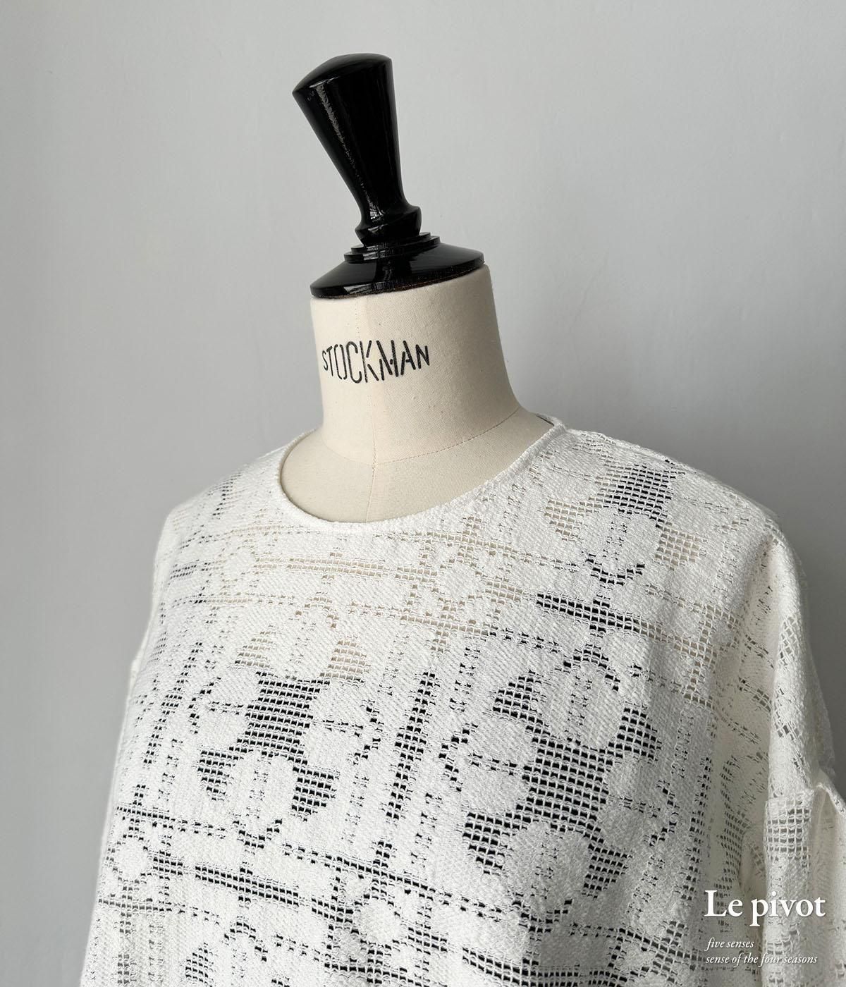 コットンレースのギャザースリーブクルーネックです。