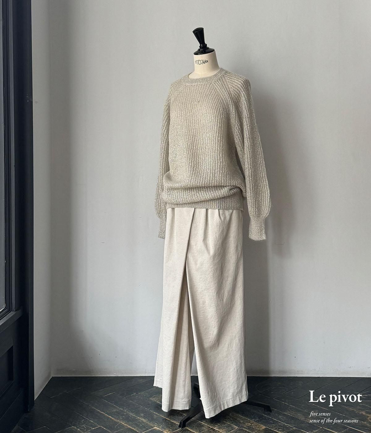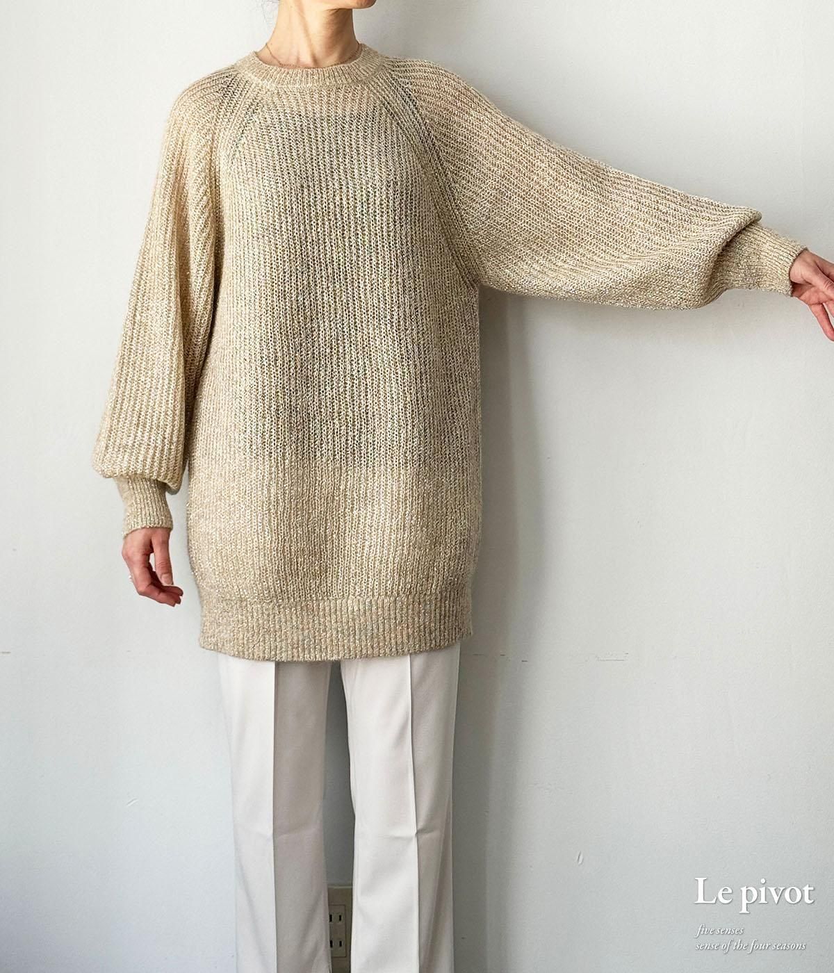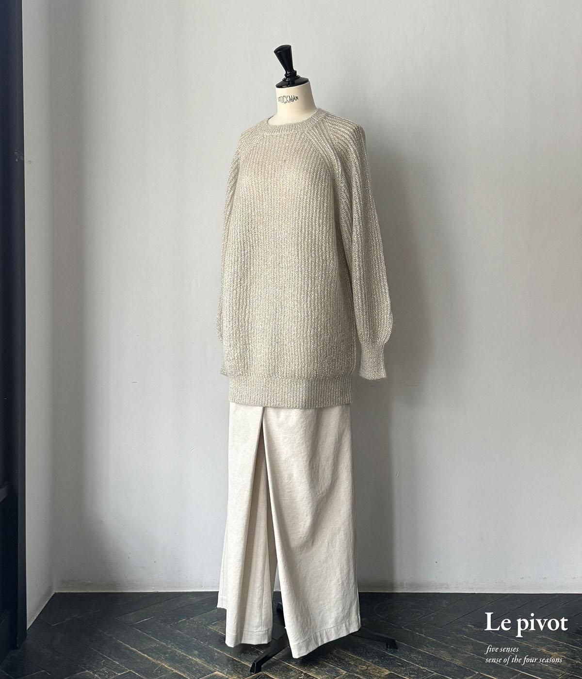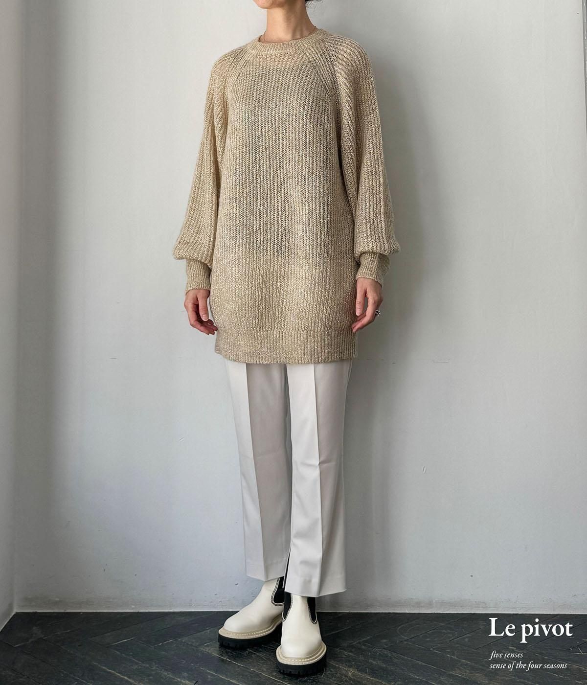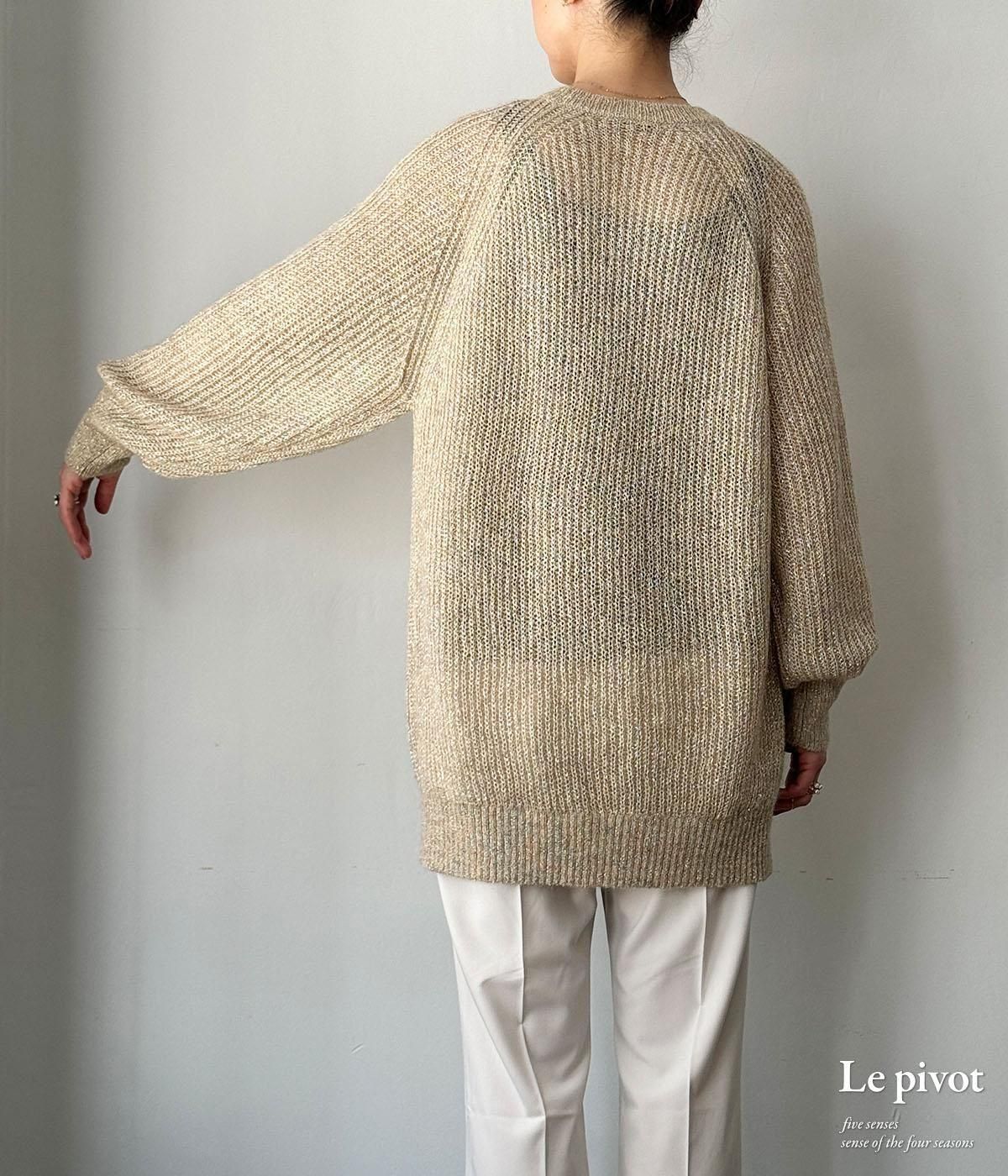 袖と裾口にたるみを持たせていて、広めのラグラン袖にしています。着た時のゆるりとした感じと袖のボリューム感が、キラキラと重なって気分が上がります。透け感があるので、インナーとのバリエーションも楽しめます。
