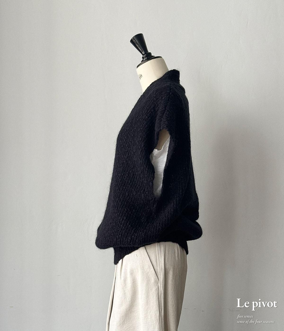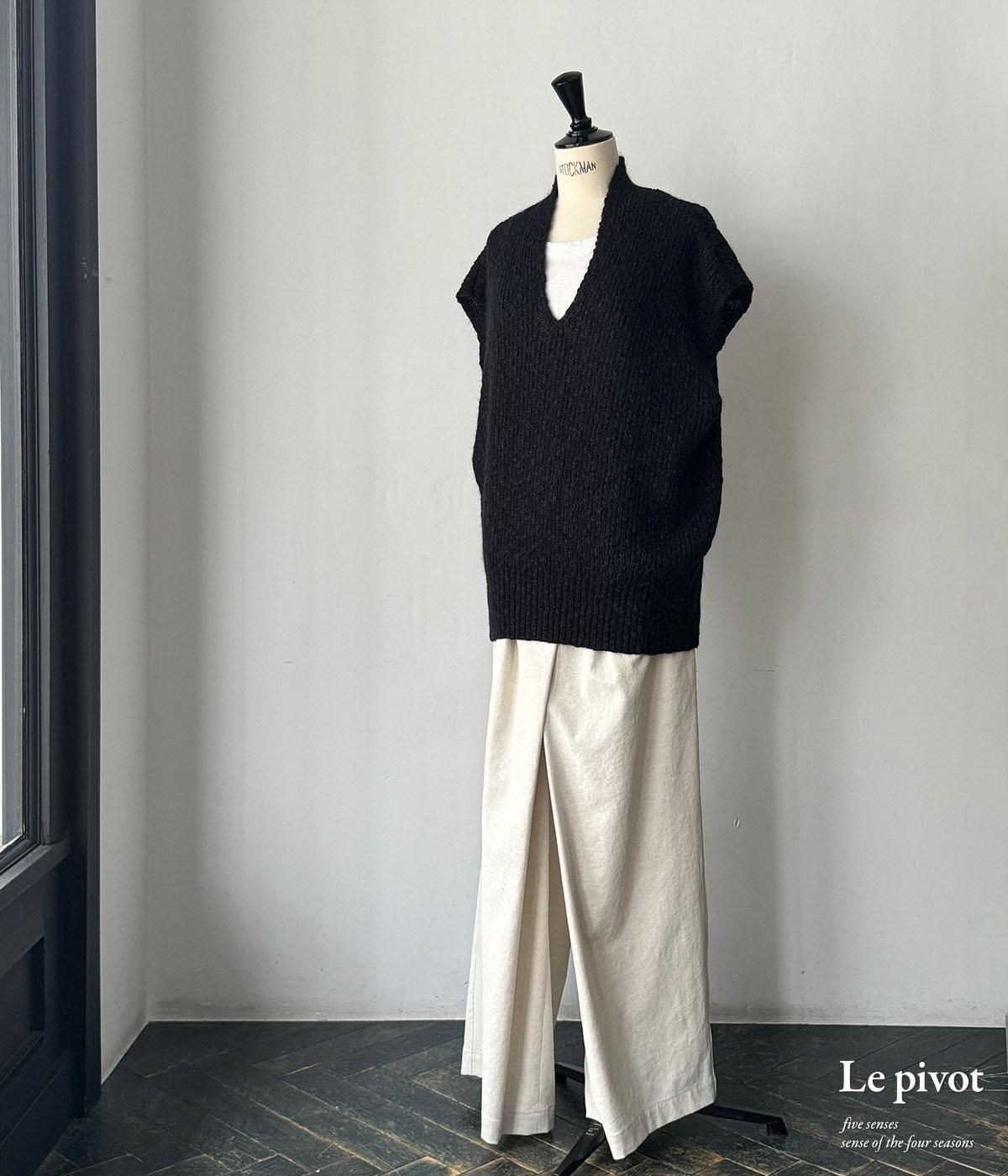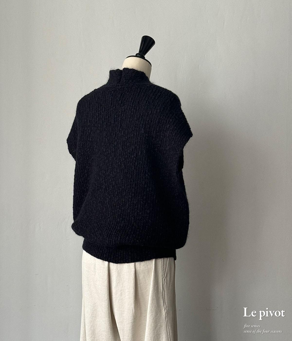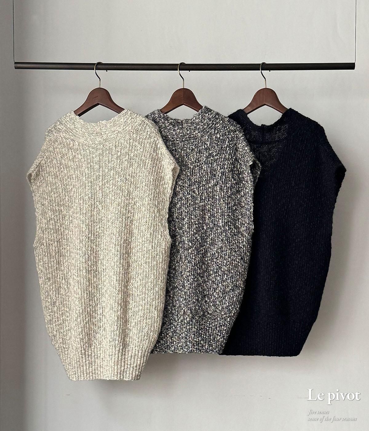 こちらは後ろ衿を高めにしたVネックベストです。 糸自体に表情があるので、合わせやすいようにシンプルな形のベストにしました。