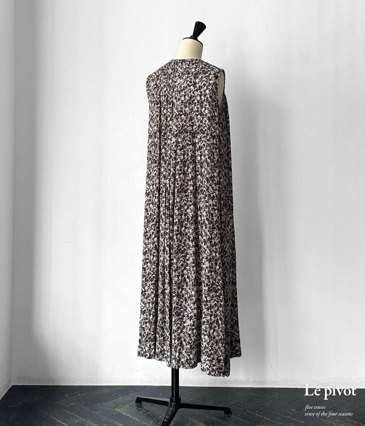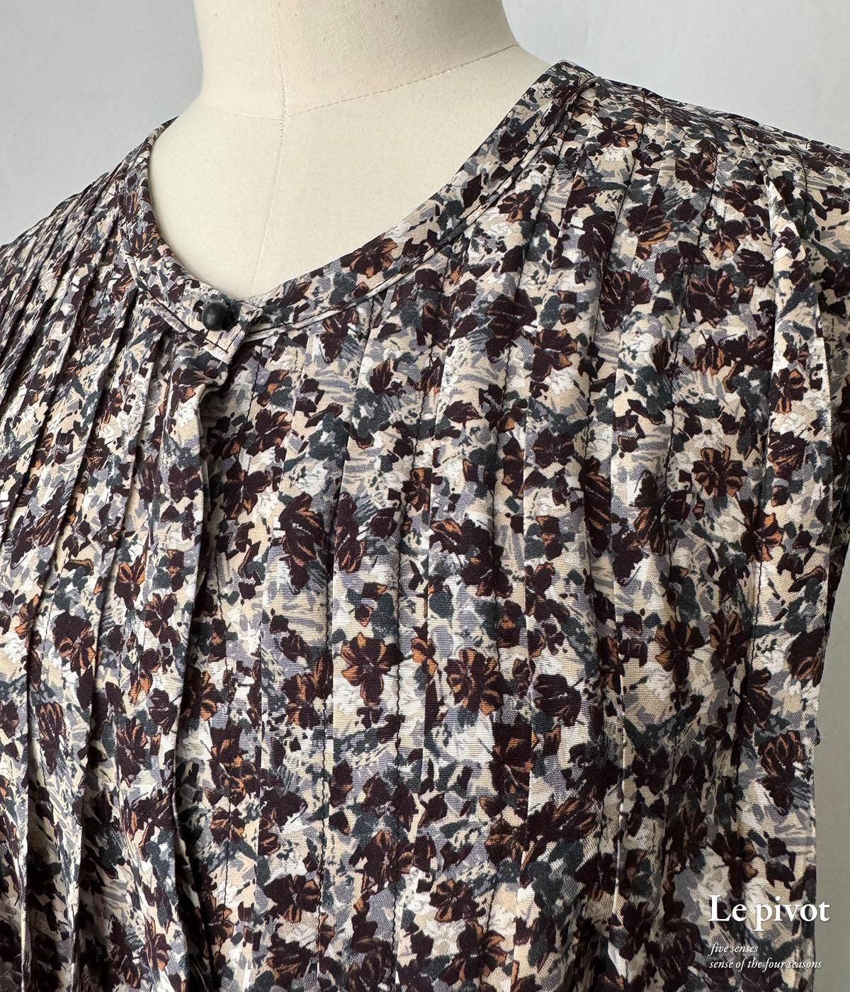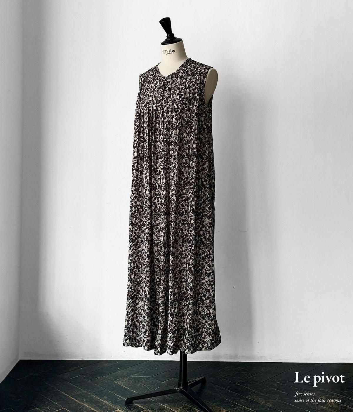 人気だった柄の再入荷です。落ち着いた印象の小花柄。 シックで大人めなプリントのタックワンピース。