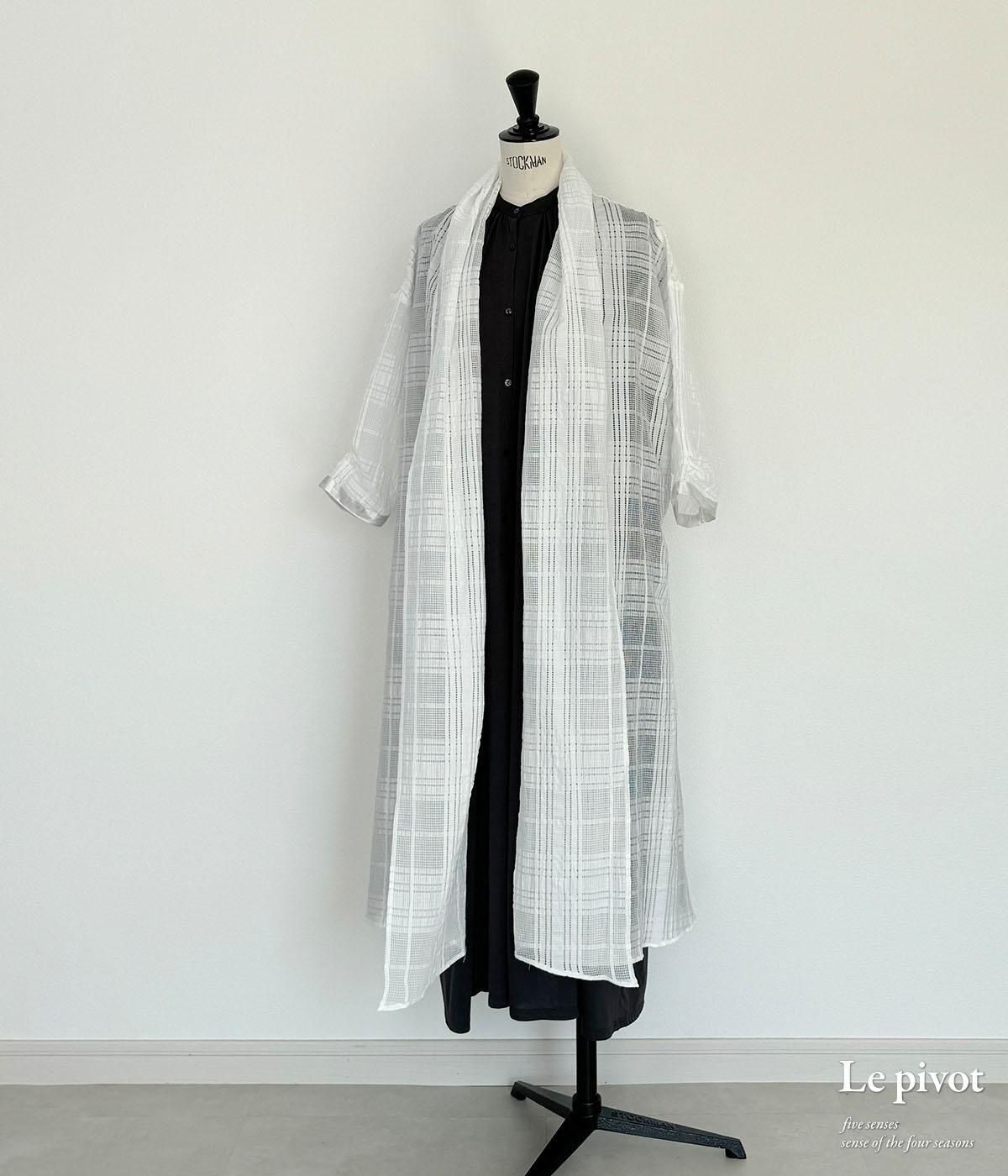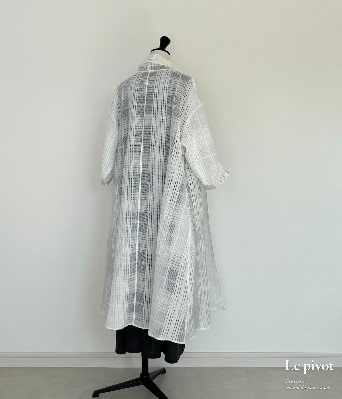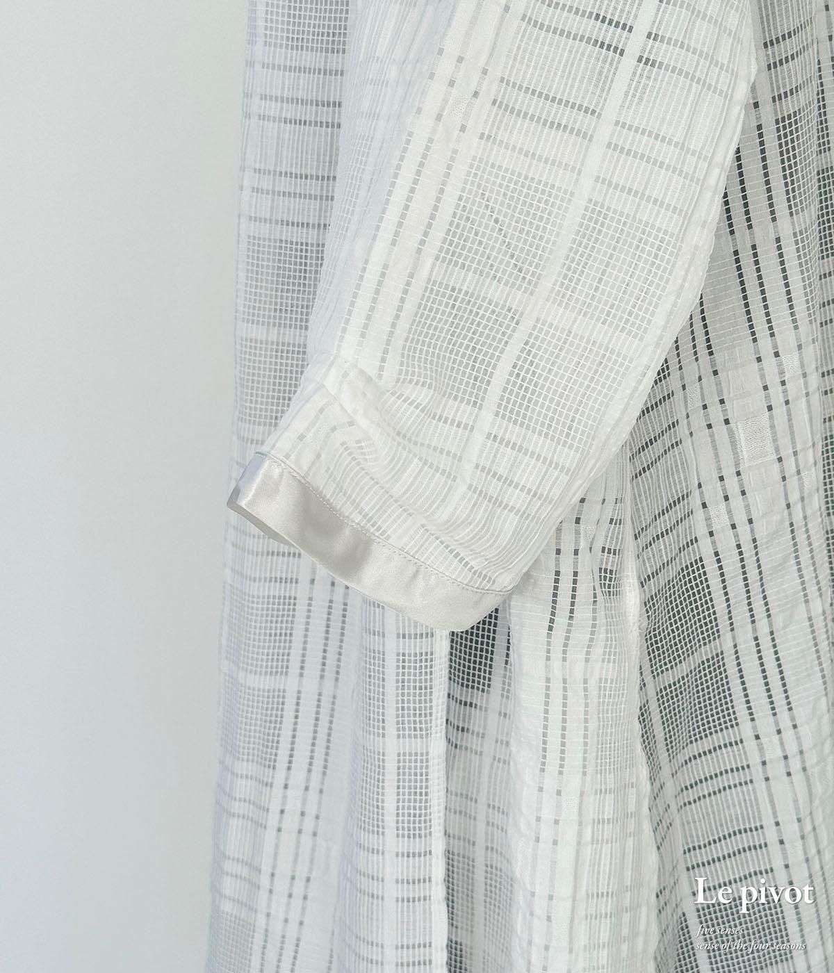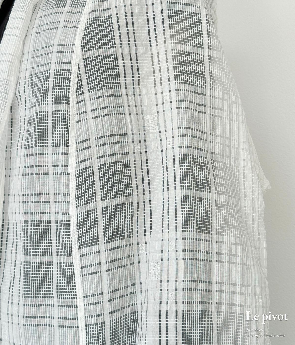 シアー素材の格子柄の抜け感が都会的でとても新鮮な1枚に仕上がりました。