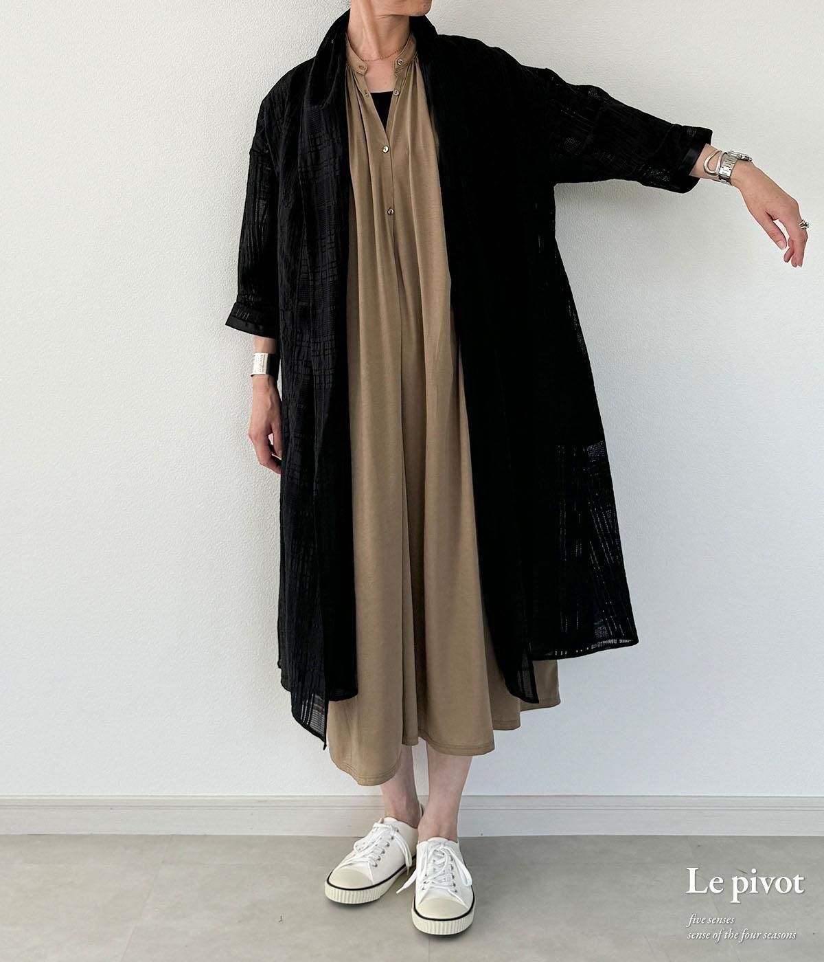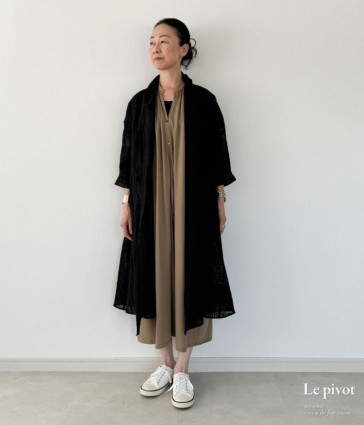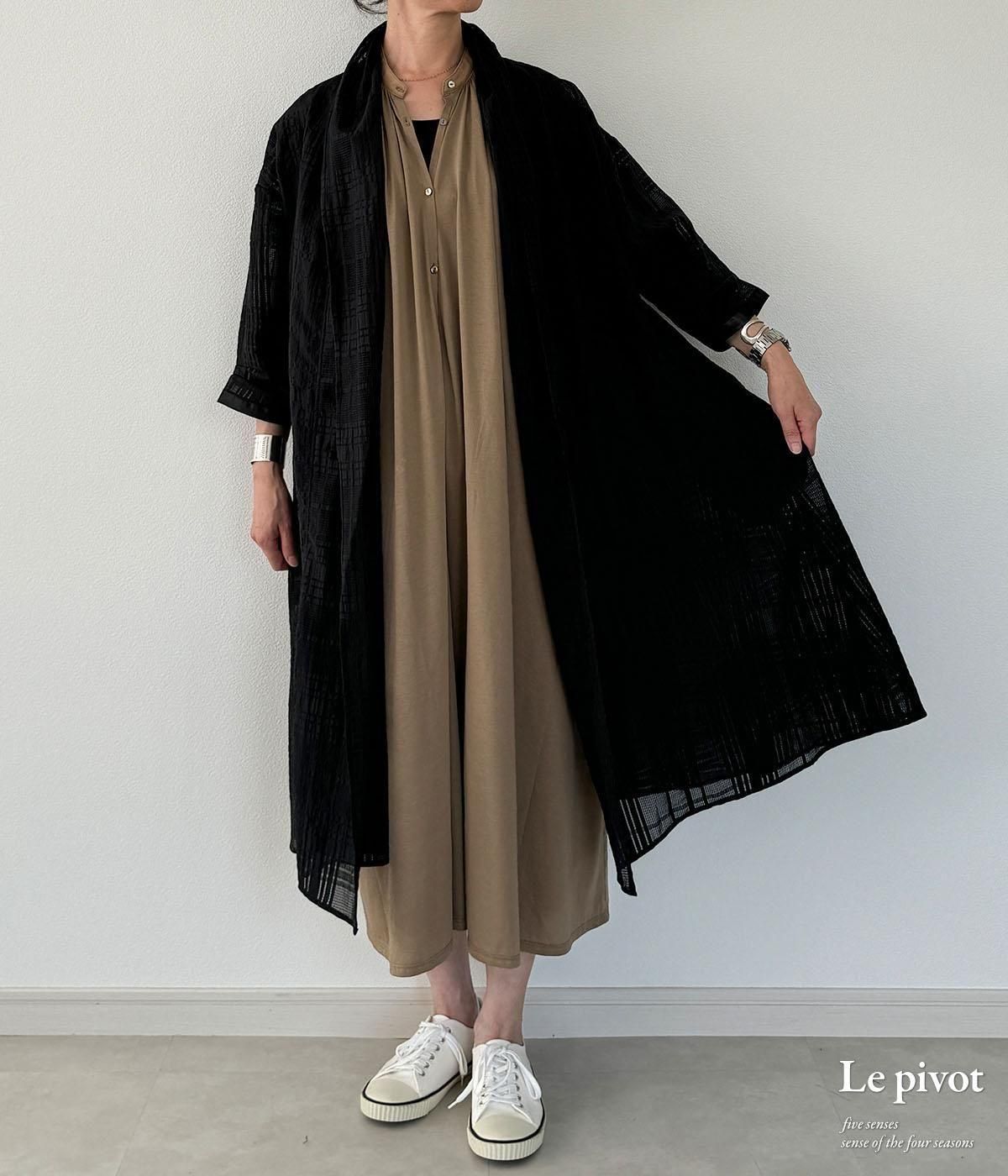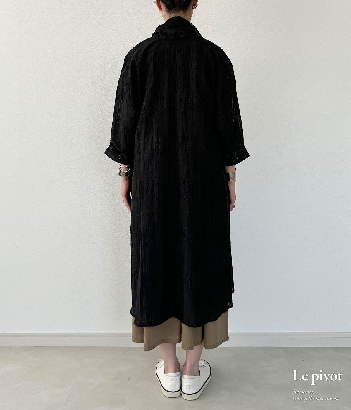 シアー素材の格子柄の抜け感が都会的でとても新鮮な1枚に仕上がりました。