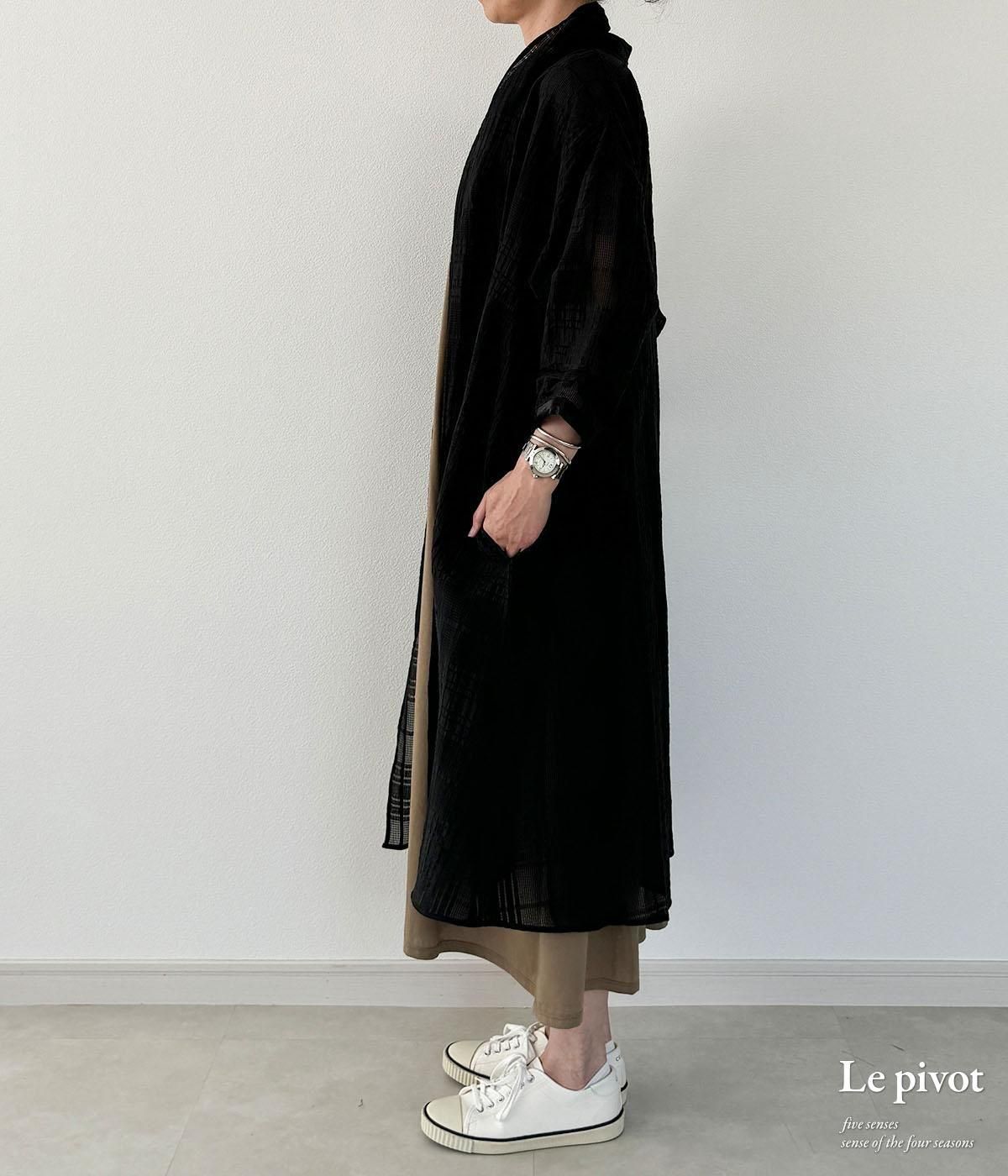人気のデニムライクローブと同じデザインの、シアーなチェック柄の生地でローブを作りました。